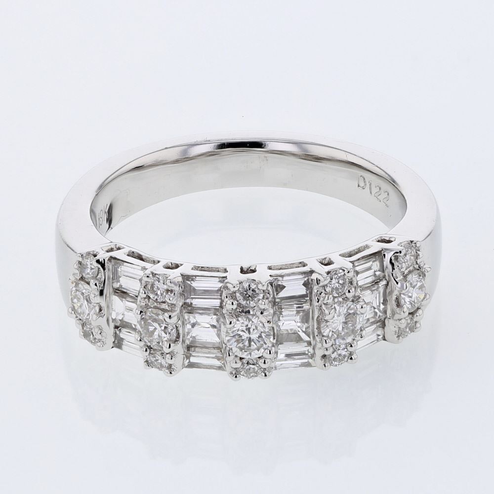 REF-183A8N ---- 3-row Baguette & Round Diamond Band in 18K White Gold