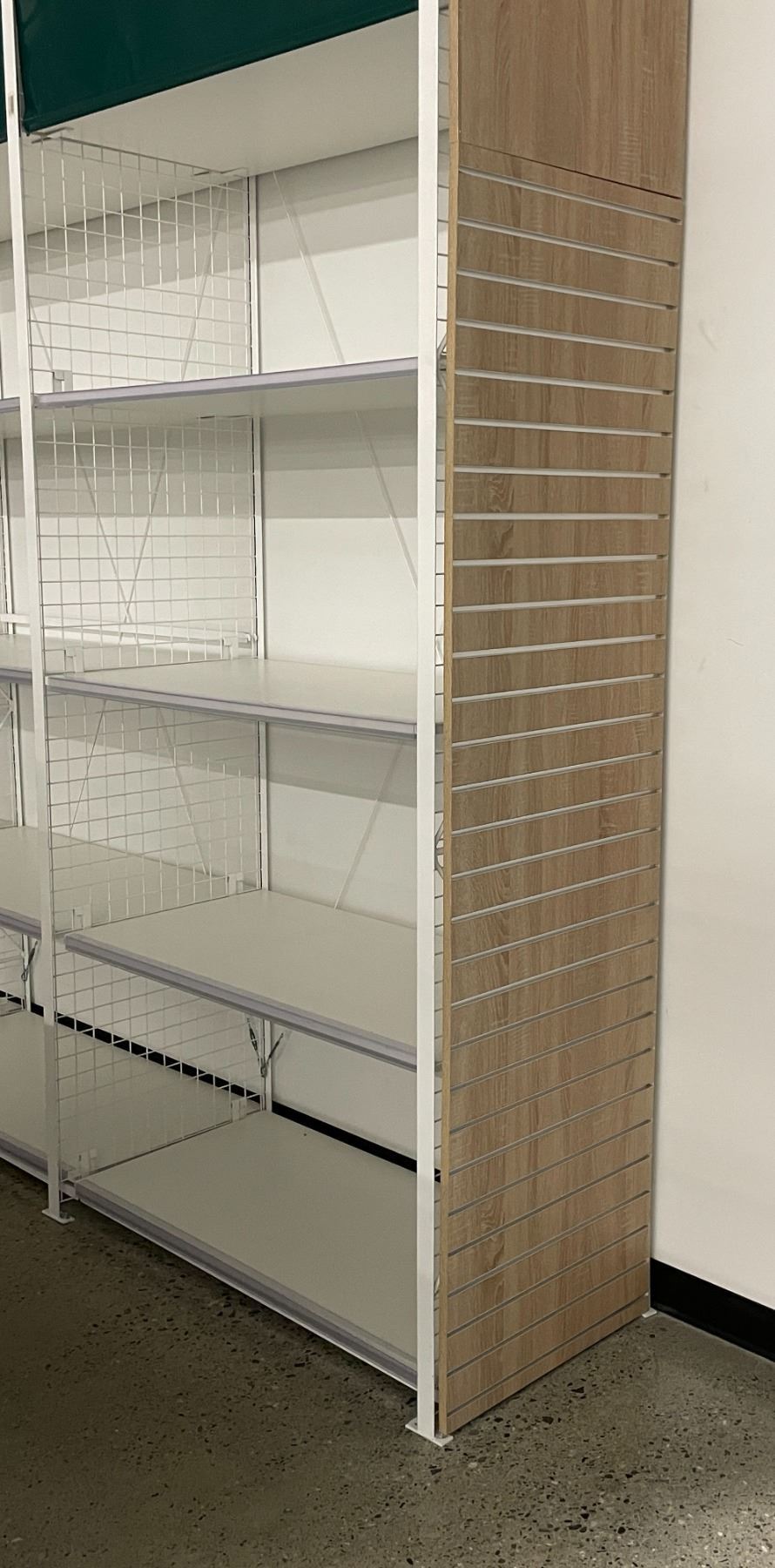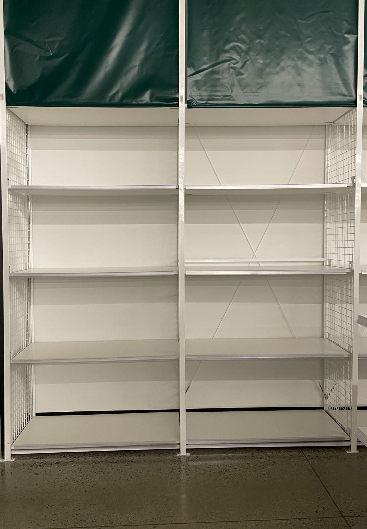 3 rows of 4 tier retail shelving (approx. 146in W 148in H 26in D - excellent condition) BIDDERS ARE RESPONSIBLE FOR ALL COSTS ASSOCIATED WITH PICKUP OF THEIR LOTS INCLUDING BUT NOT LIMITED TO RENTAL OF EQUIPMENT, FORKLIFTS, LABOUR, TRUCKING, TOOLS ETC.