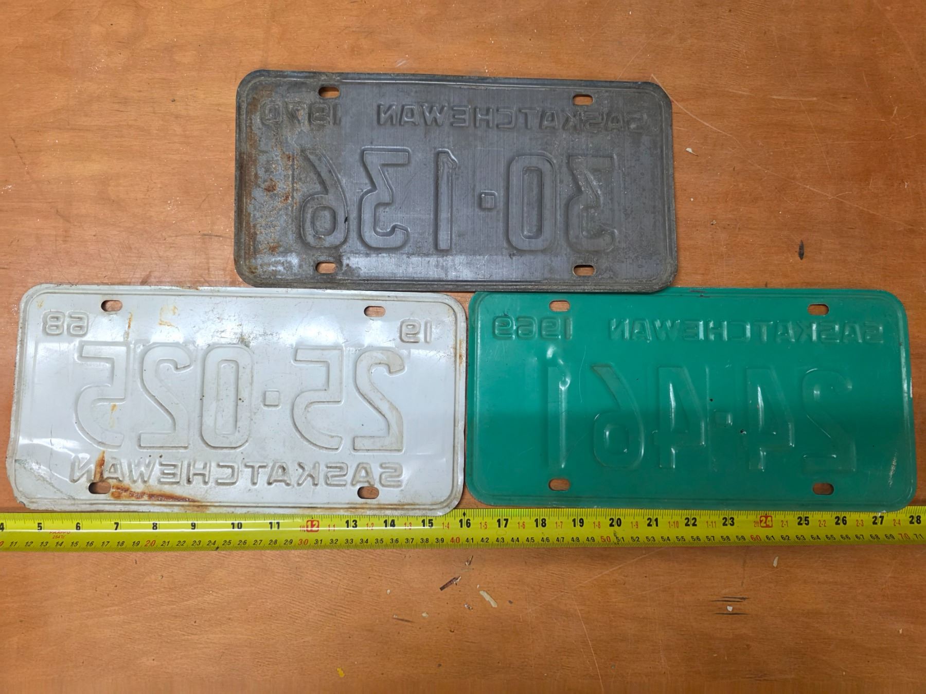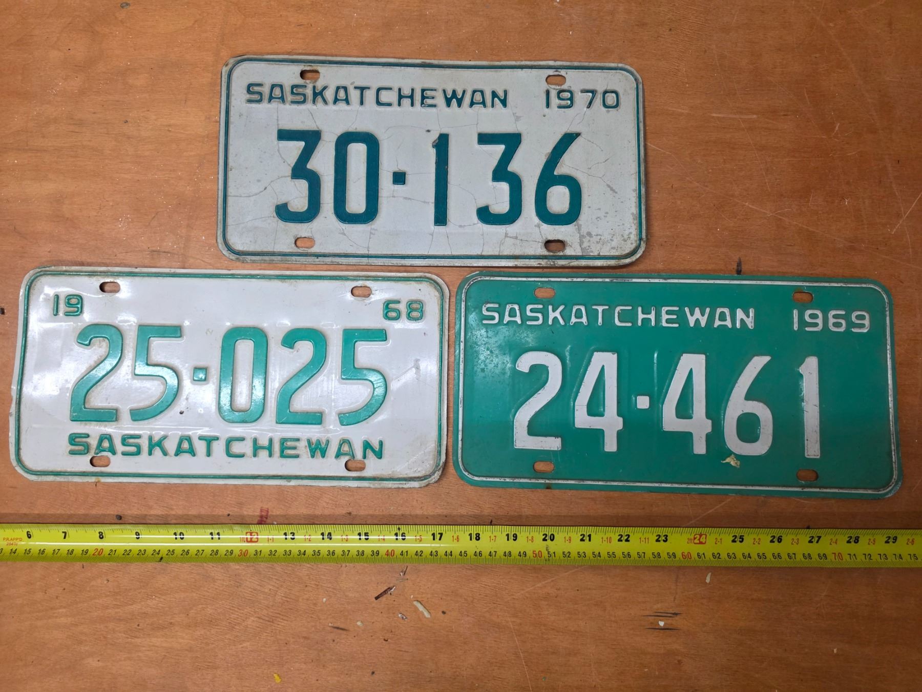 3 saskatchewan lisence plates- 1968, 1969 and 1970