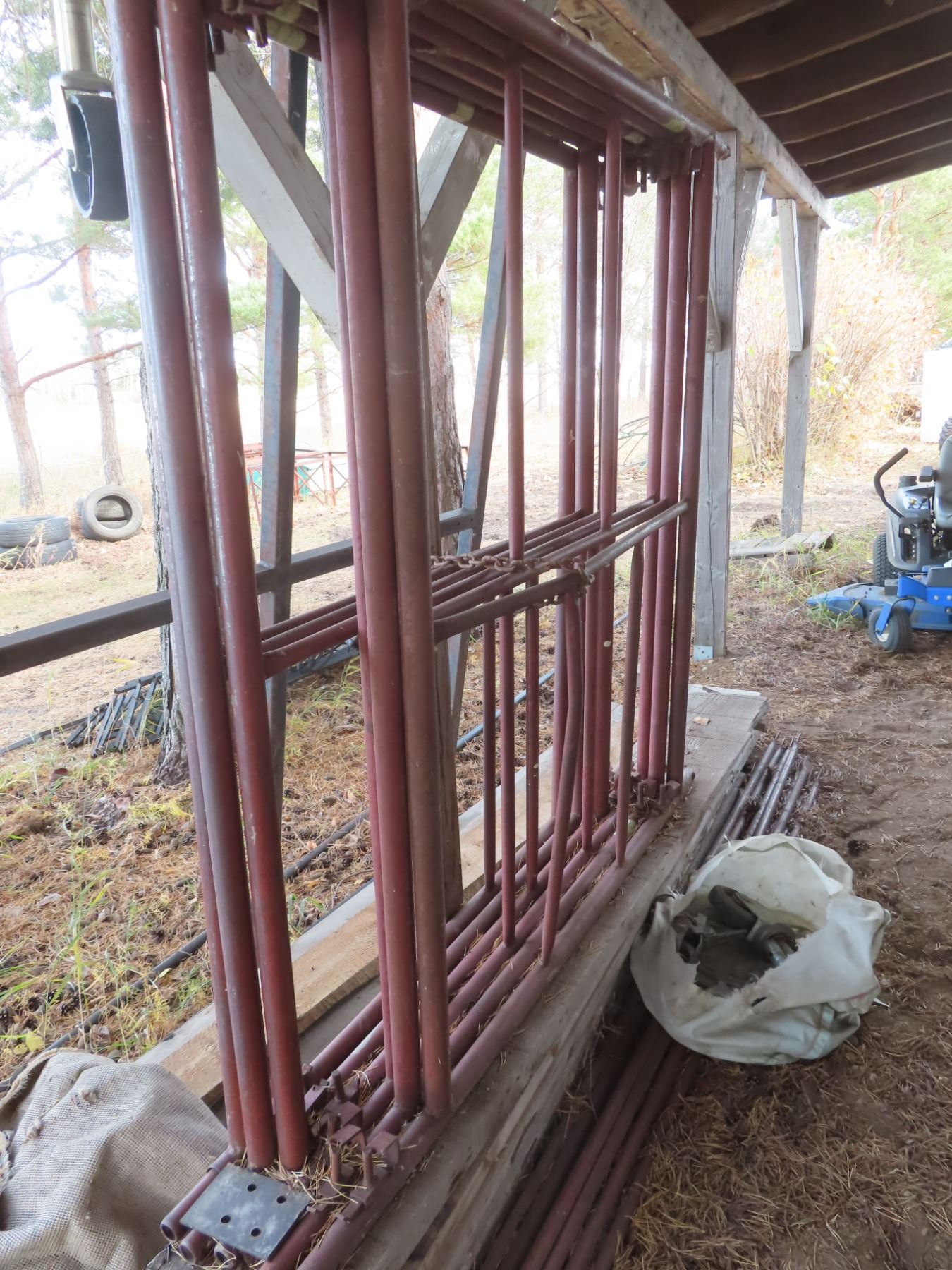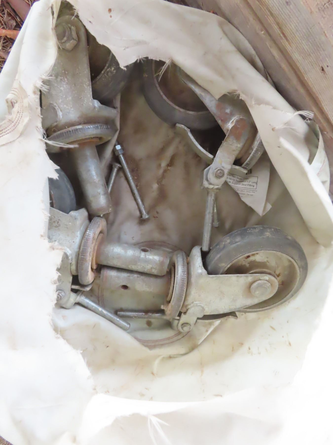 3 sections of scaffold with 3 2x12 planks, casters and braces