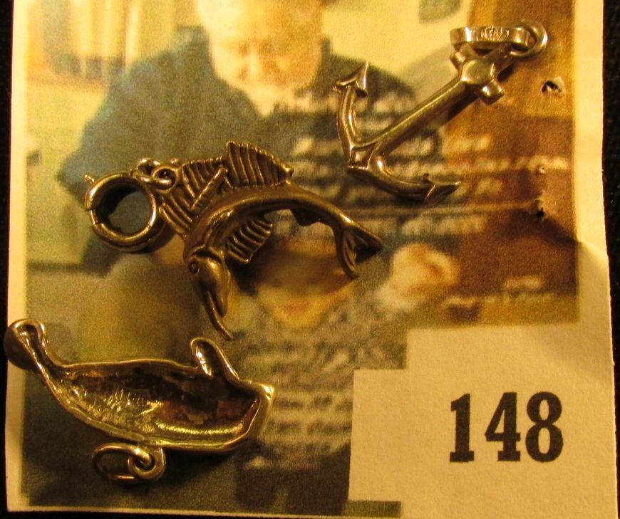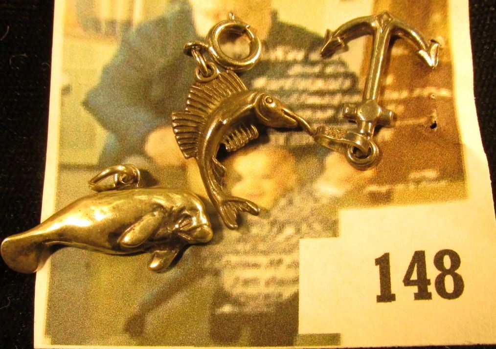 (3) sterling nautical related charms – an anchor, a sailfish, and a manatee (when’s the last time you saw a manatee charm?), 4.8 g / 3.2 dwt