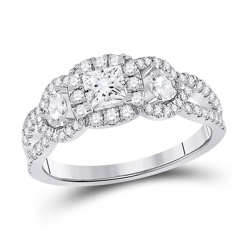 14kt White Gold Princess Diamond 3-stone Bridal Wedding Engagement Ring 1-1/3 Cttw.