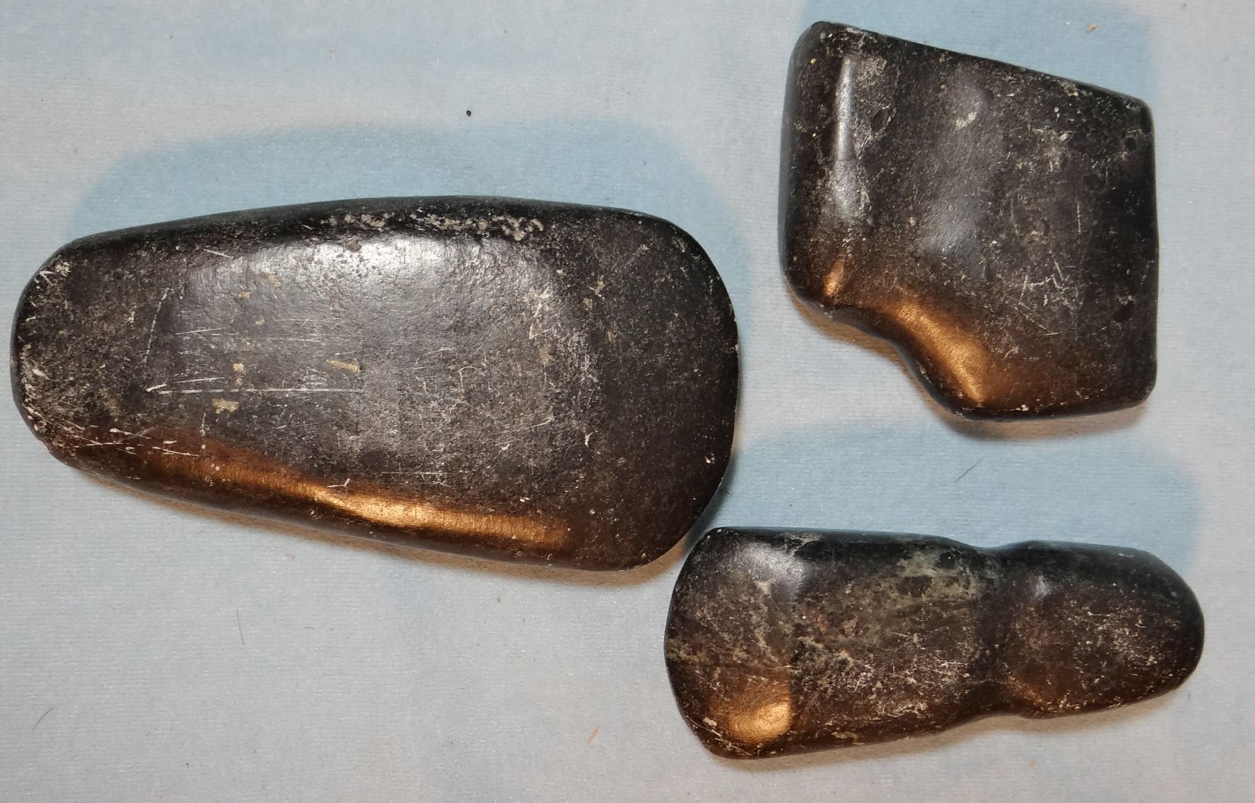 (3) stone hammers/axes, 3" - 6"