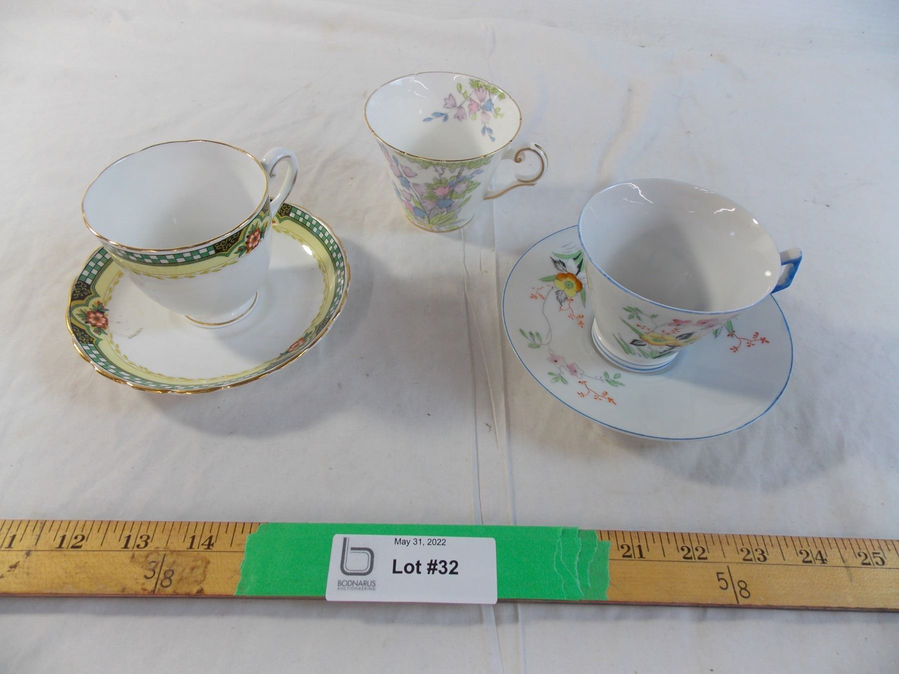 (3) teacups + (2) saucers - made in Japan set, Tuscan Fine Bone China set (made in England), Wellington Best Bone China Cup only (England 7990/1)