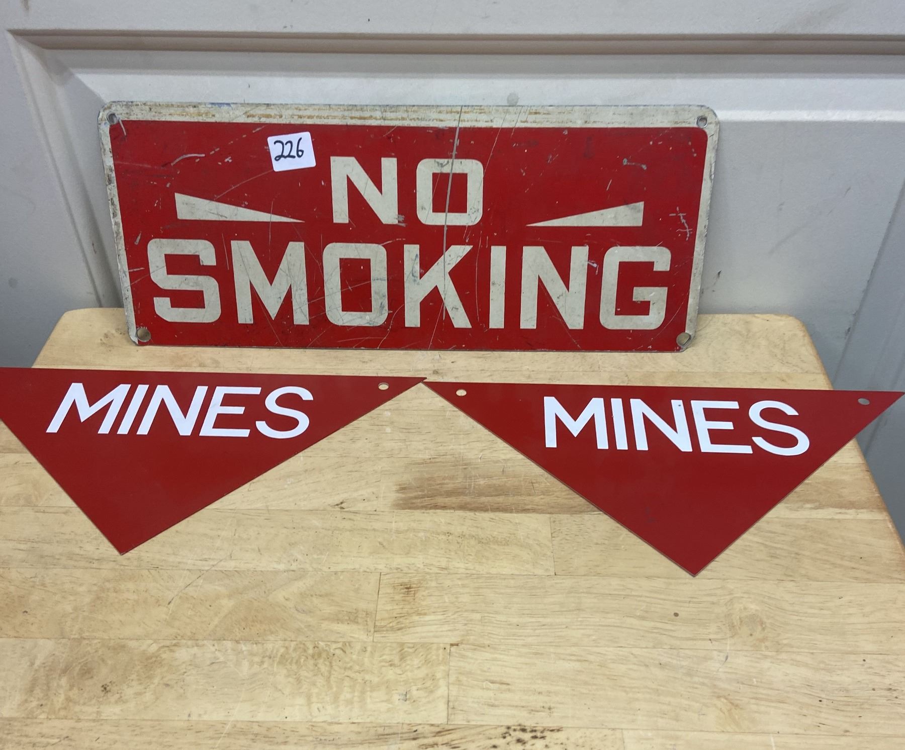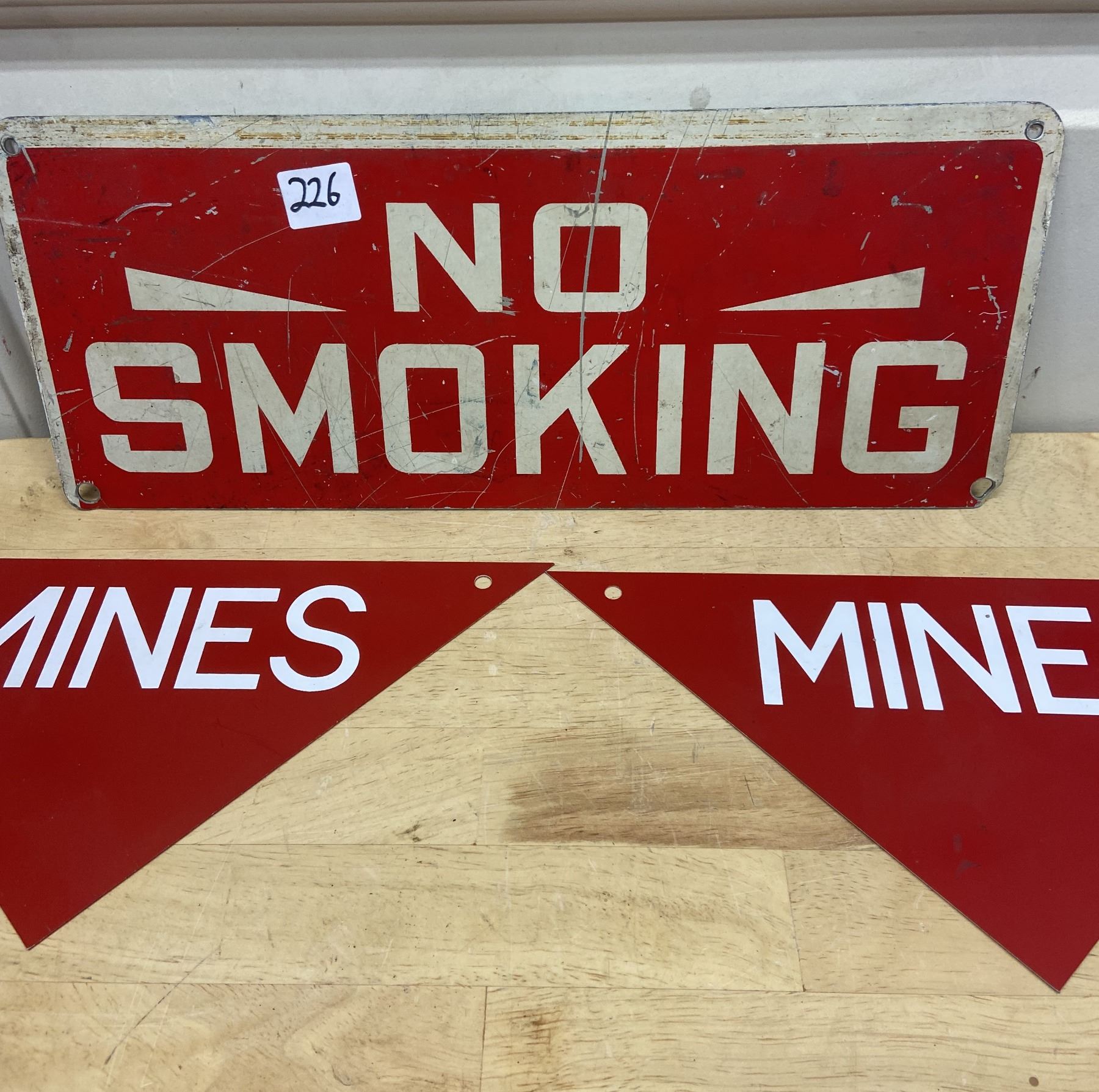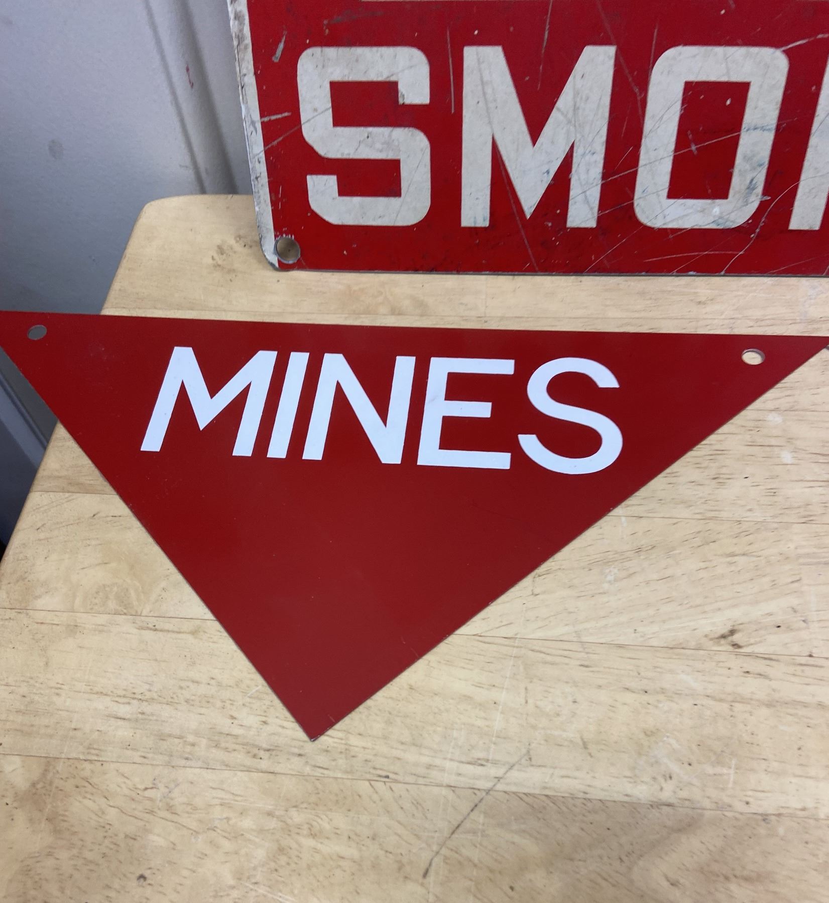 3 tin signs - 2 mines and 1 No Smoking