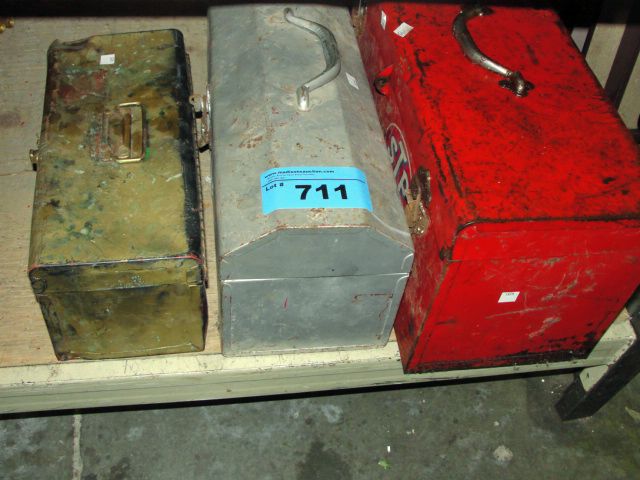 3 tool boxes and contents; one red, one silver