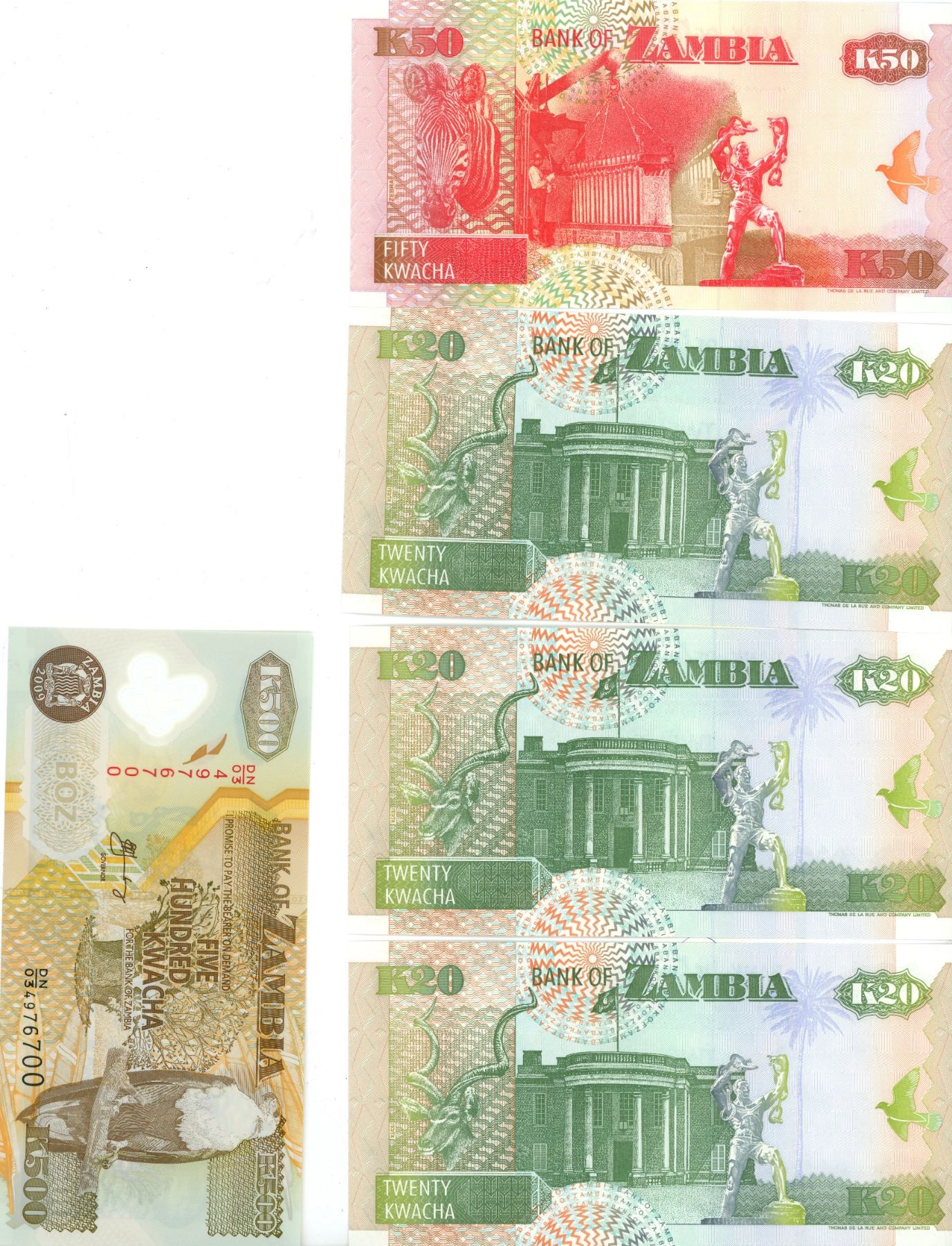 3 twenty kwacha seq+ fifty kwacha+ five hundred