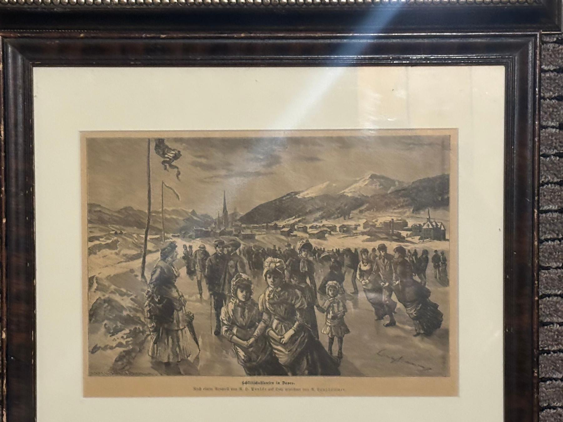 3 vintage prints middle is a early 1900s photo and bottom is a print from the late 1800s