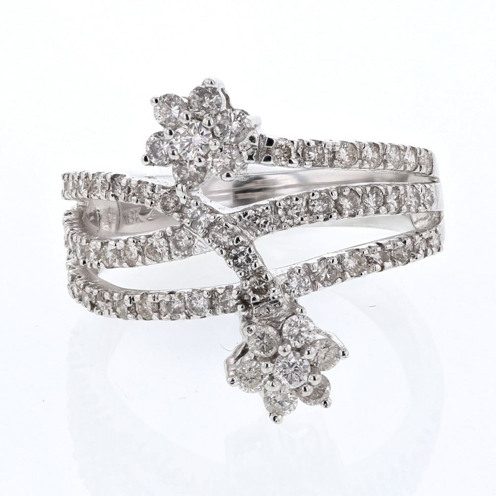 3-way Split Shank w/ Flowers Diamond Ring in 18K White Gold