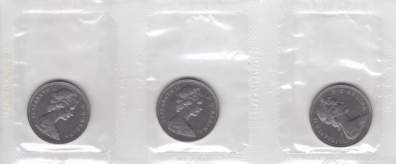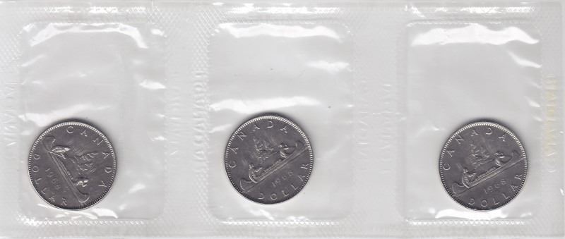 3 x 1968 Canadian "No Island" Copper-Nickel Dollars In Original RCM Packaging