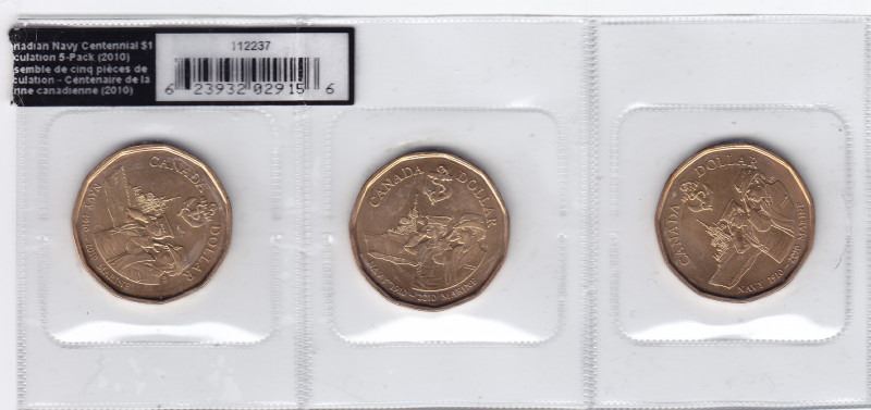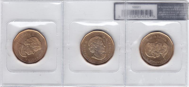 3 x 2010 Canadian Navy Centennial $1 Loonie Coins In RCM Packaging