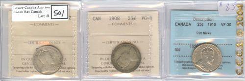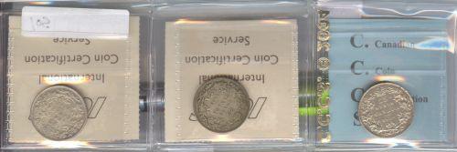 3 x 25 Cents 1907, 1908, 1910 CCCS