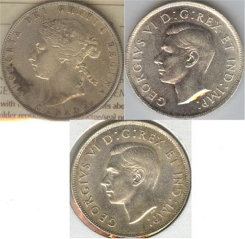 Lot of 3 x 50 Cents; 1872H ICCS F-15, 1943 in EF-40, 1943 in AU-50. What are the treasure in the 43?