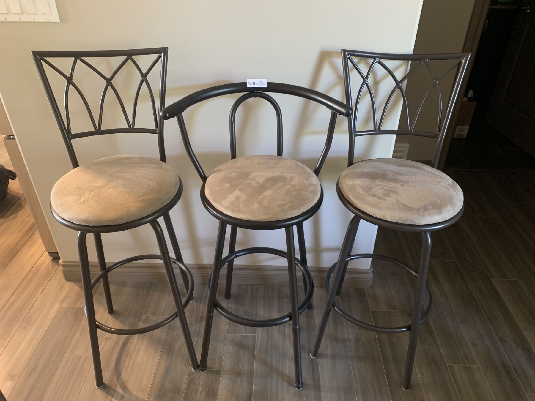 2 x taller bar stools are 43" high x 15" diameter (cushion)