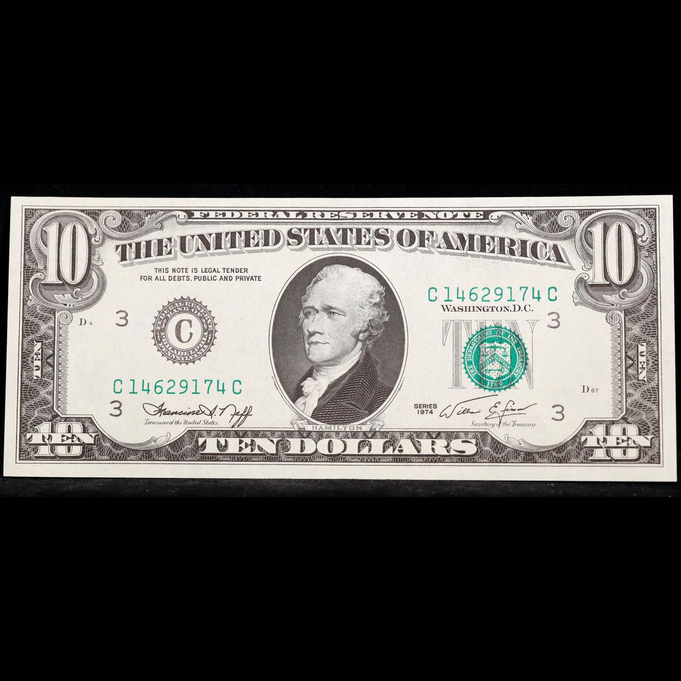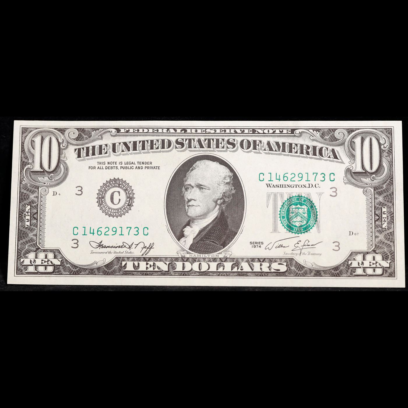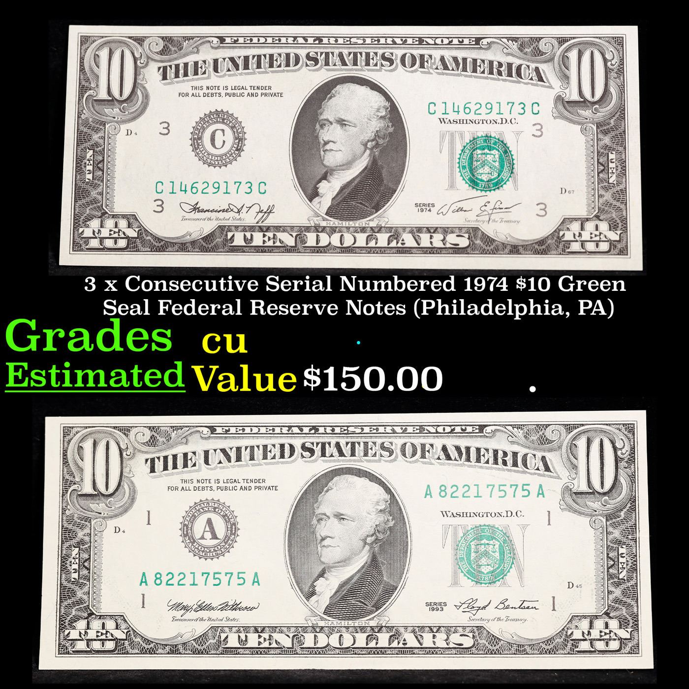 3 x Consecutive Serial Numbered 1974 $10 Green Seal Federal Reserve Notes (Philadelphia, PA) Grades CU.