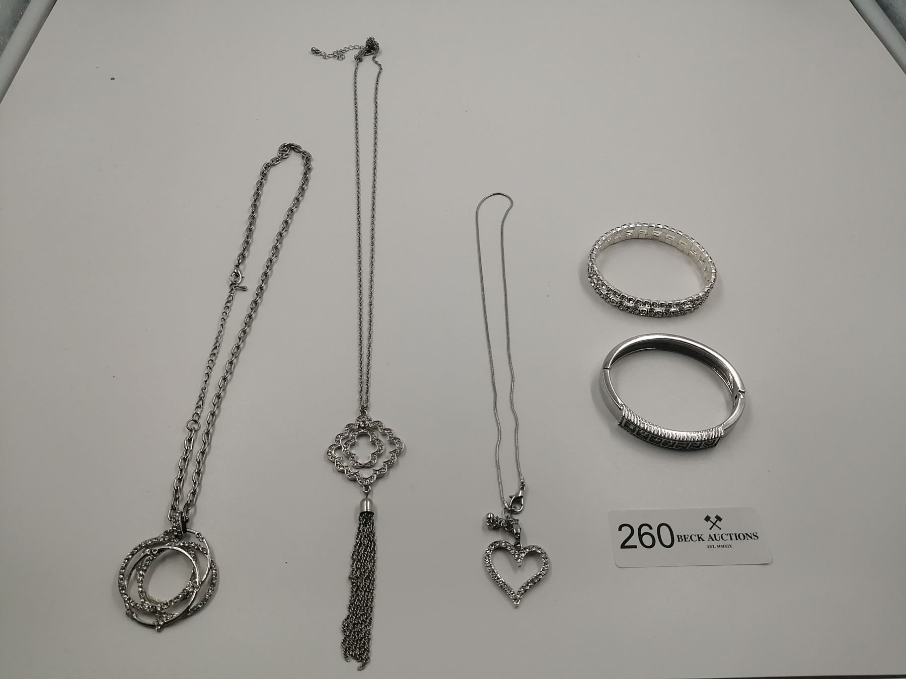 3 x Necklaces and 2 x Bracelets - Silver Colored