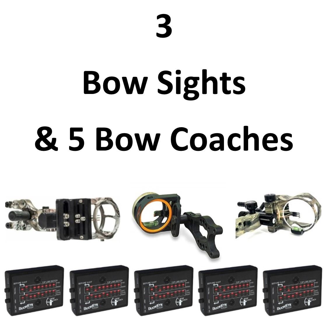 3 x Sights & 5 x Bow Coachs, Soul Hunter 3 Pin Lost Camo AT, Grave Dancer 3 pin .019, G5 Optix SE .029 LH