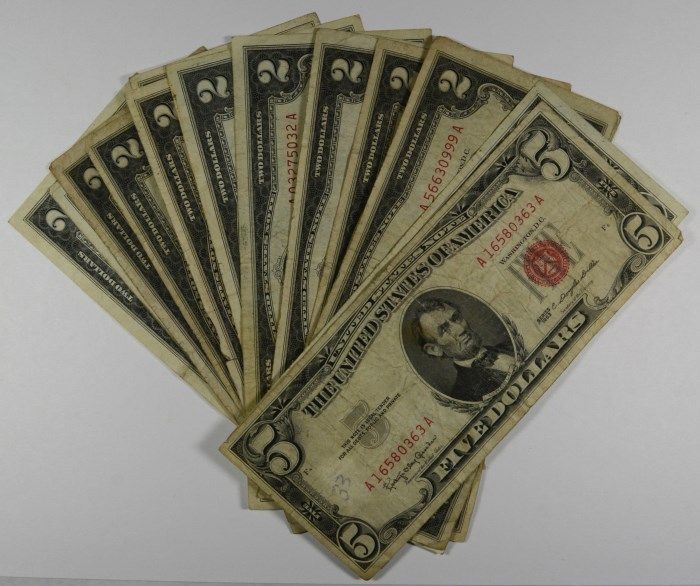 $30.00 IN FACE VALUE OF U.S. RED SEAL CURRENCY, WITH A SMALL AMOUNT OF WRITING