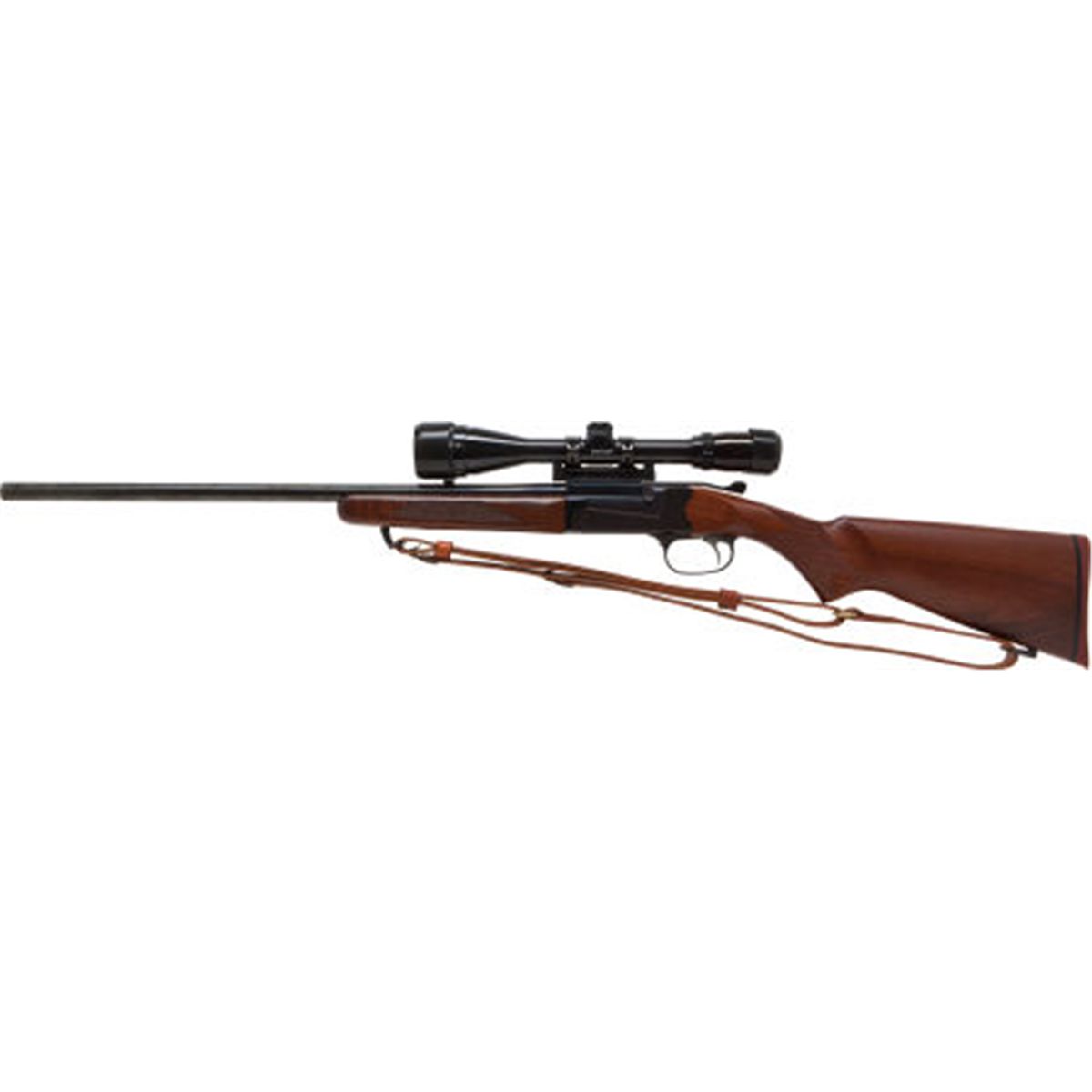.30/06 Thompson Hunter Rifle Model Single Shot Rifle with Telescopic Sight. Serial no. 13949. .30/06. 24-inch barrel. Blued break-open single shot rifle. Checkered pistolgrip stock of slightly figured walnut. Checkered fore-end. Recoil pad. Sling. Bushnell Sportview 4x12 telescopic sight. Condition: Excellent, showing very little use. NRA FIREARMS FOR FREEDOM PROGRAM