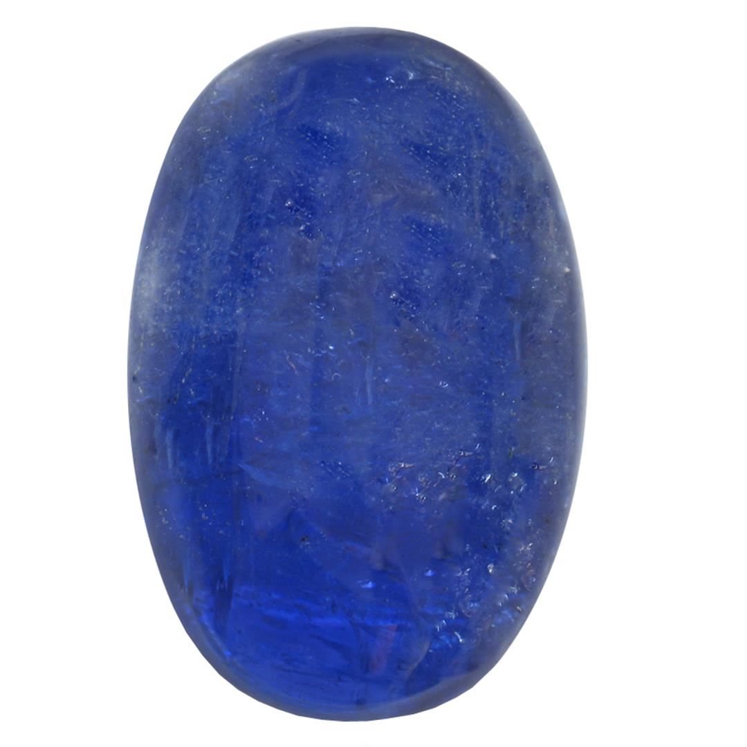 One oval cabochon cut natural tanzanite, measuring 23.00 x 15.50 x 9.00mm, exact weight 30.06ct., clarity is heavily included, type I, dark, very slightly grayish, blue color, (GIA B 7/3), cut is good. Transmitting light somewhat diffusely, transparent to translucent. Naturally occurring internal & external characteristics are present. Indications of heat treatment. Westfield Appraised at $2,885.00.