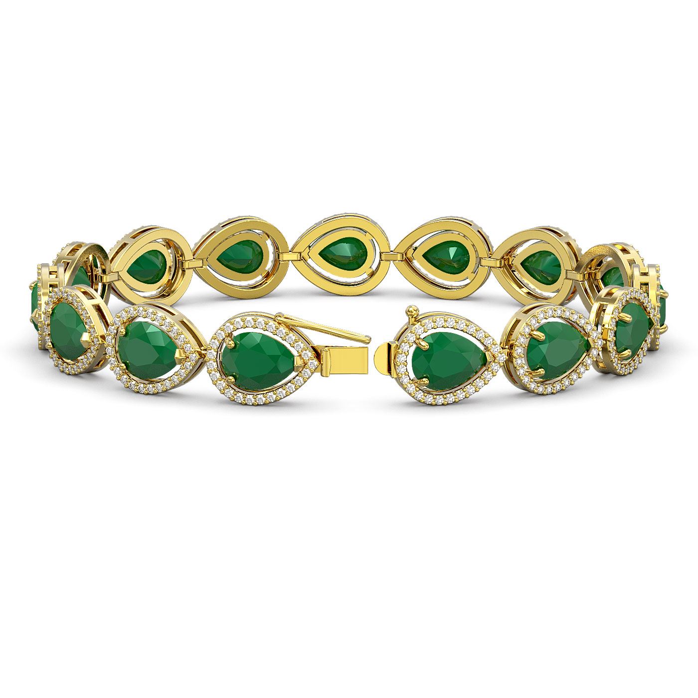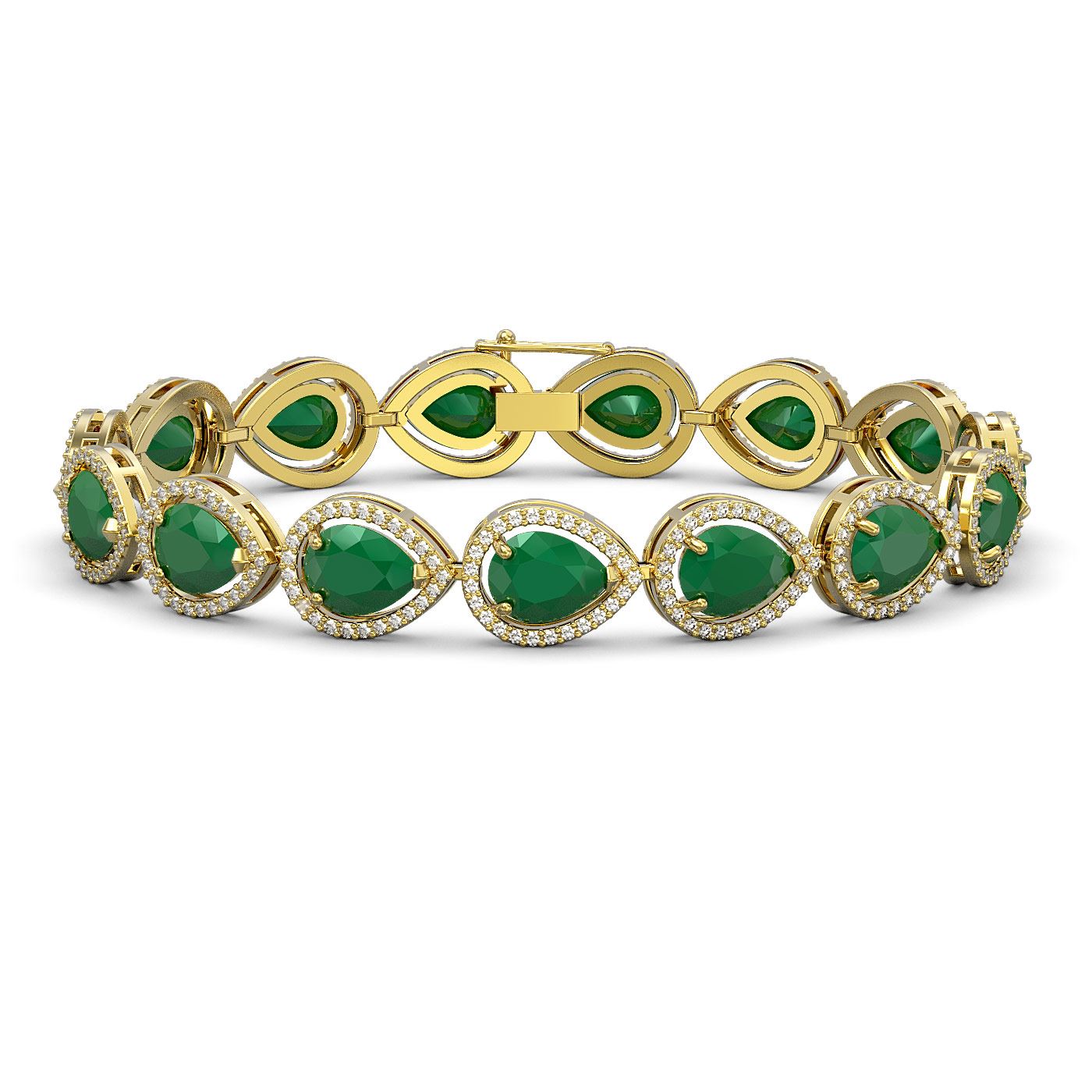 30.06 ctw Emerald & Diamond Halo Bracelet 10K Yellow Gold