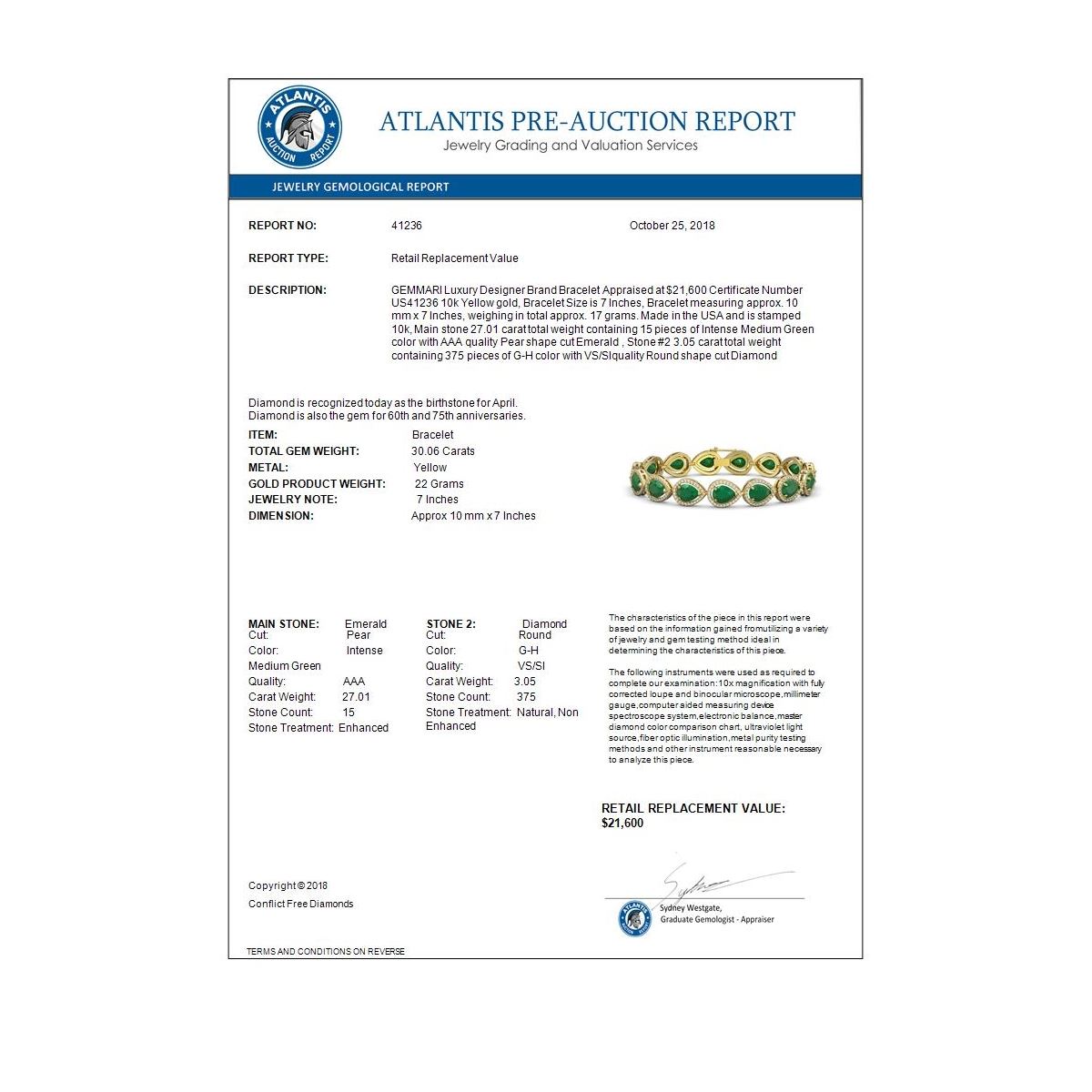 Total Gem weight: 30.06 carats