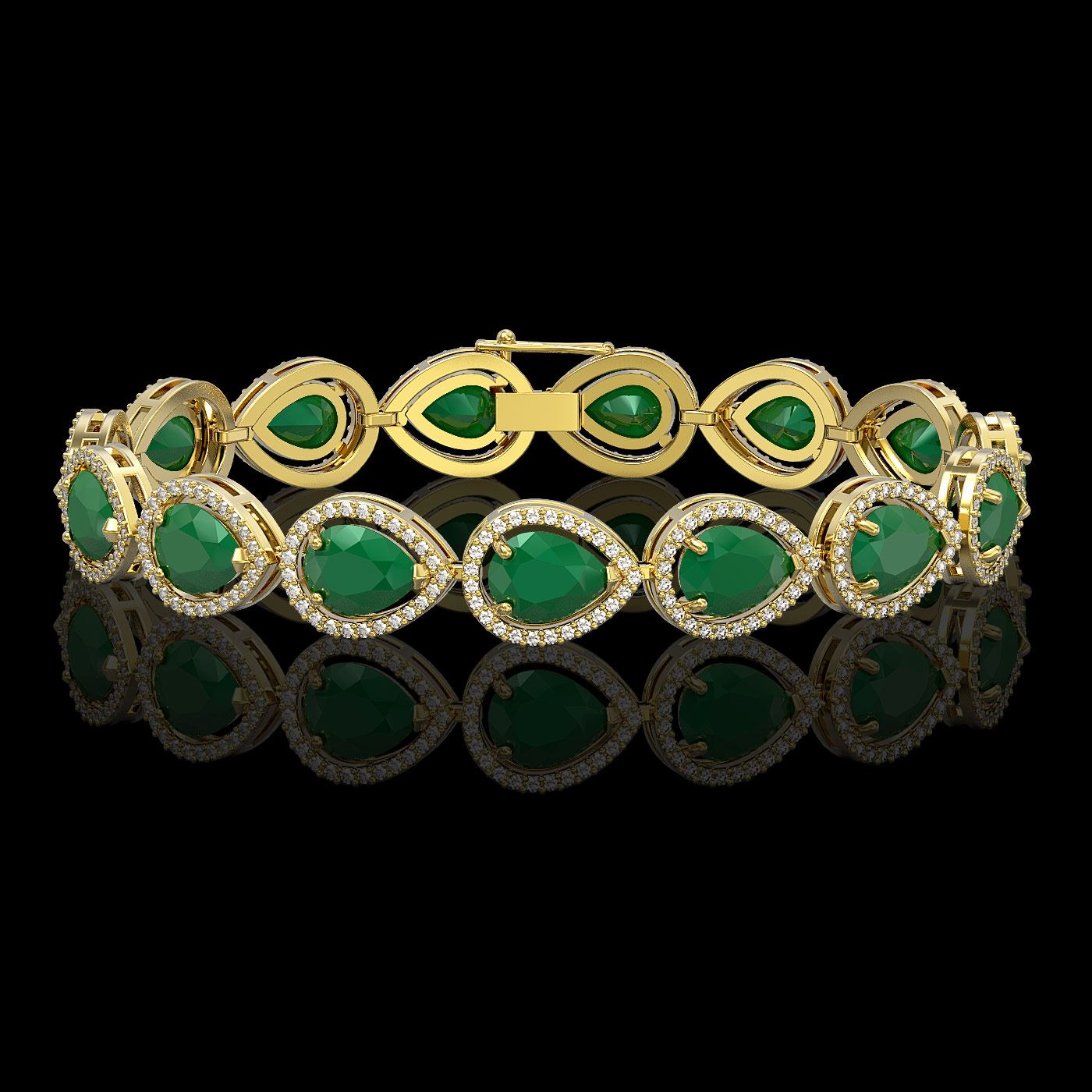 REF-393Y3X - SKU: 41236 ---- 30.06 ctw Emerald & Diamond Micro Pave Halo Bracelet 10k Yellow Gold