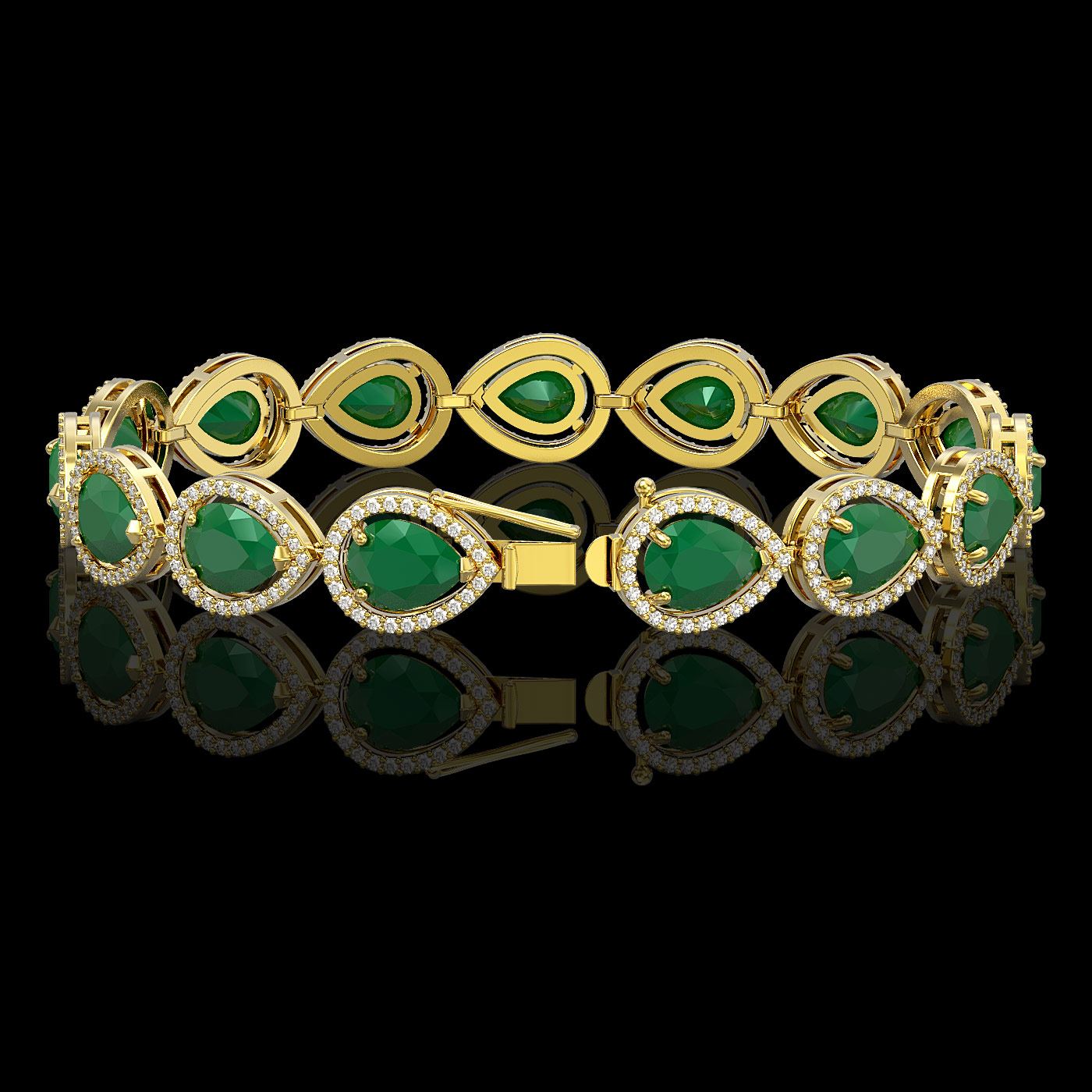 REF-393Y3X - SKU: 41236 ---- 30.06 ctw Emerald & Diamond Micro Pave Halo Bracelet 10k Yellow Gold