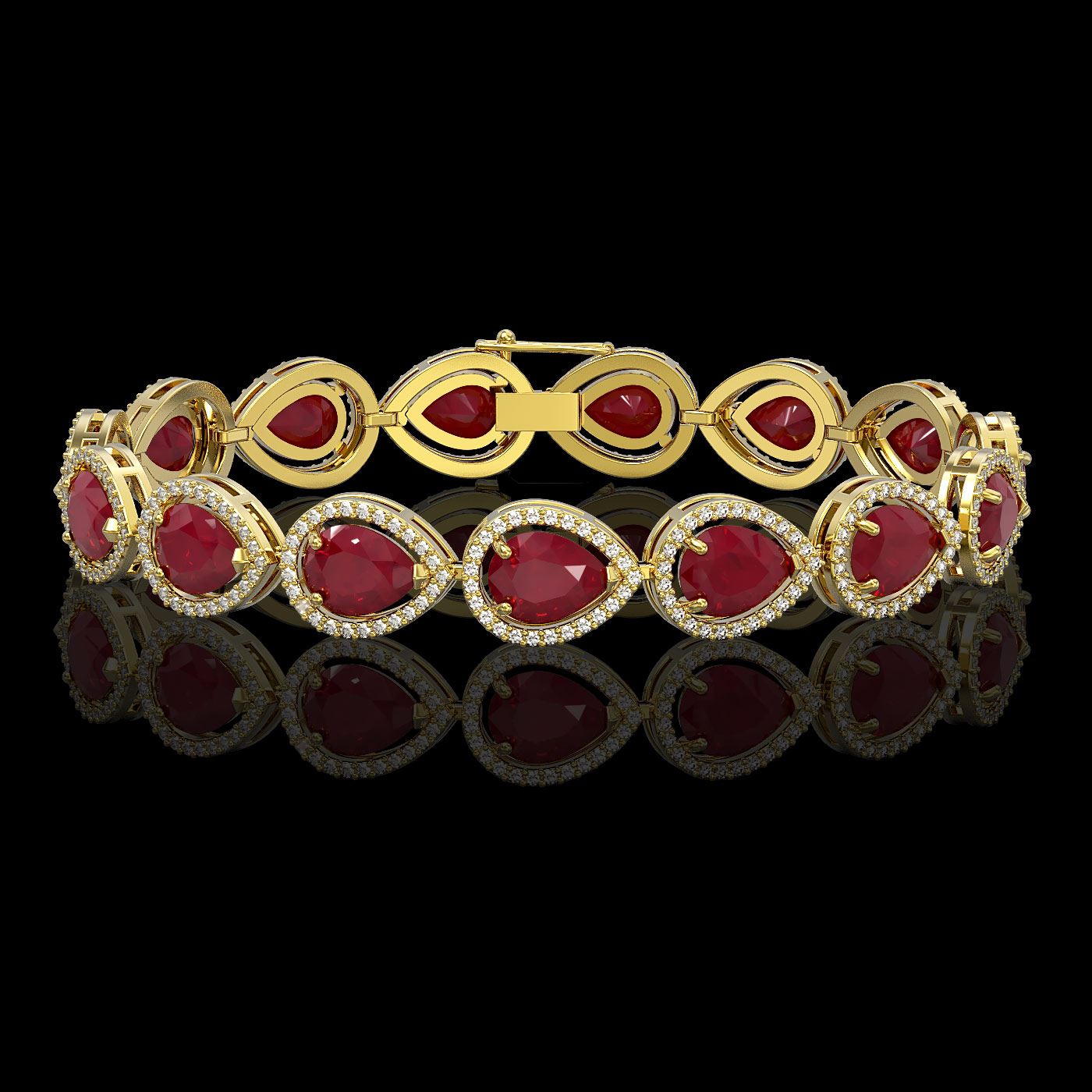 REF-368R5K - SKU: 41239 ---- 30.06 ctw Ruby & Diamond Micro Pave Halo Bracelet 10k Yellow Gold