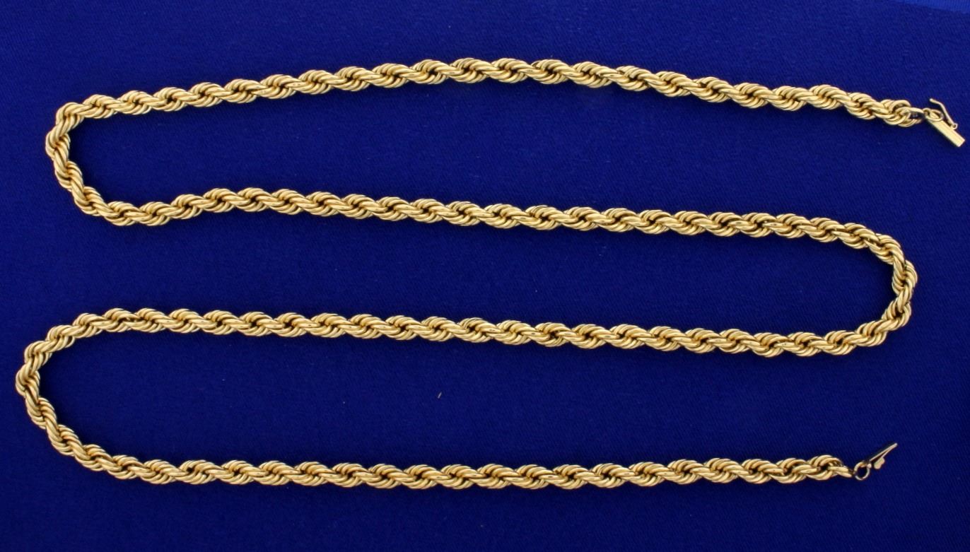 In 14k yellow gold. 5mm thick with safety clasp. 26.6g