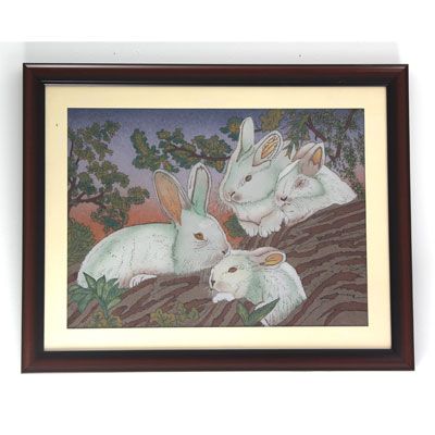 30 1/2" x 24 1/2" Playful Rabbits Gemstone Painting **|**|** ; MSRP: $2100