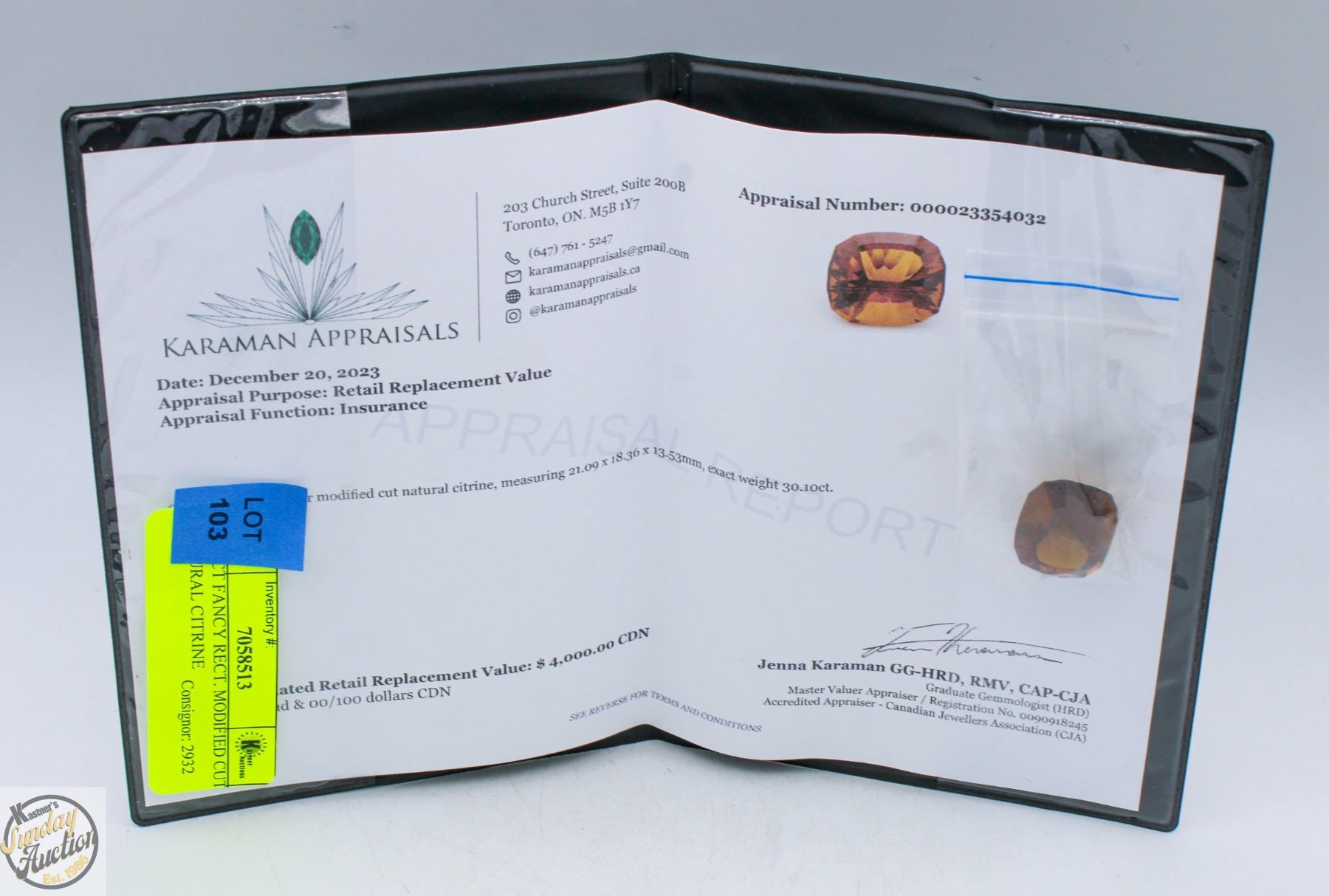 30.10CT FANCY RECT. MODIFIED CUT NATURAL CITRINE