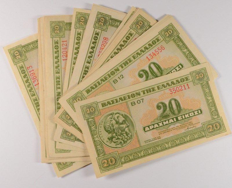 ( 30 ) 1940 20 DRACHMAI GREECE, CHOICE UNCIRCULATED, BEAUTIFUL NOTES!!