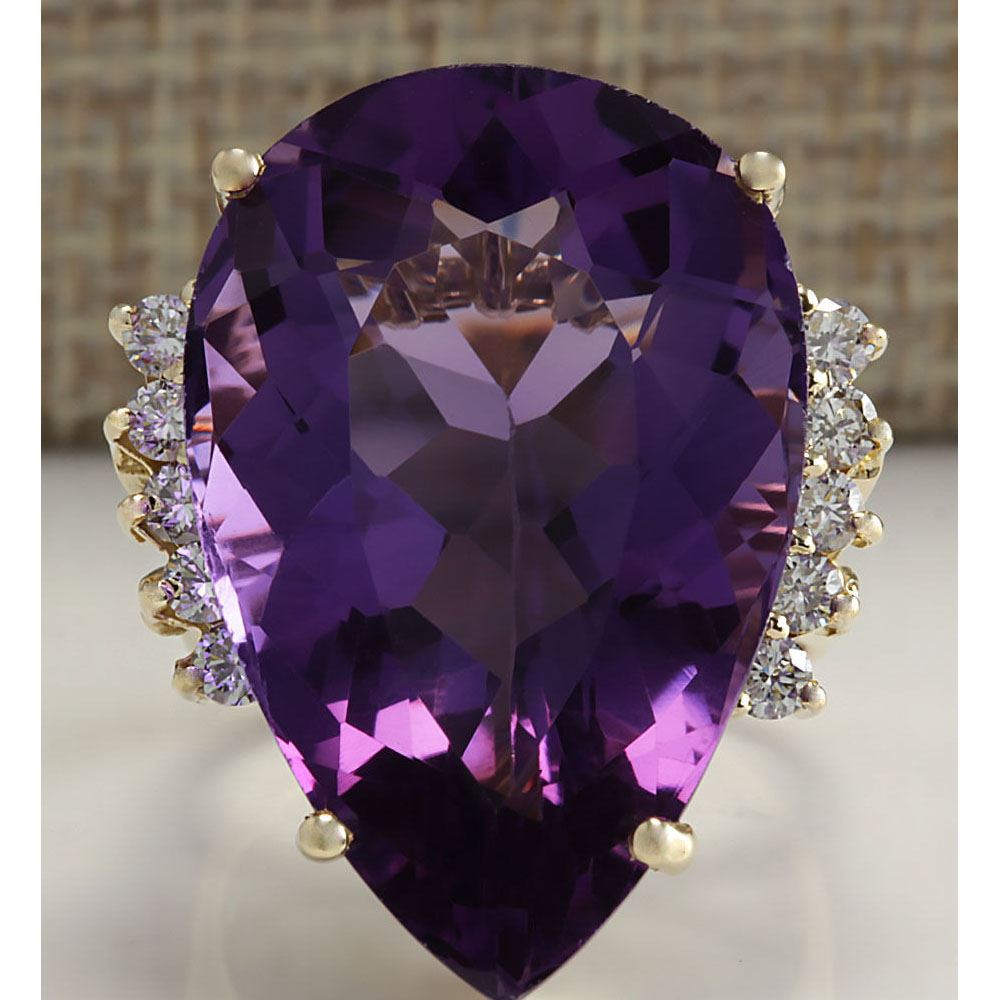30.25 CTW Natural Amethyst And Diamond Ring In 14K Solid Yellow Gold