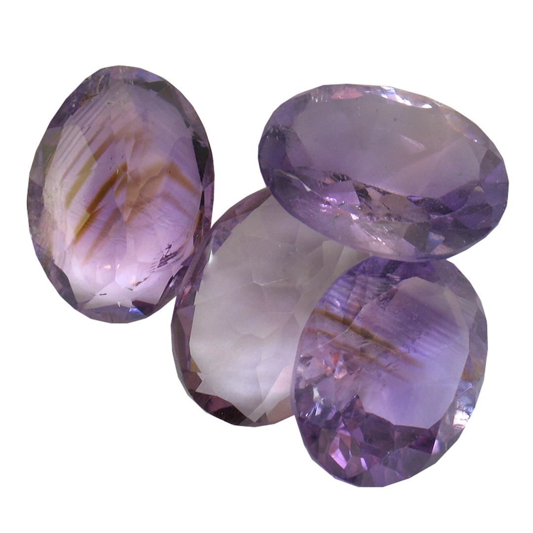 Four oval mixed cut natural amethysts exact total weight 30.25ct., clarity is slightly included, type II, medium dark, very slightly grayish, purple color, (GIA P 6/3), cut is good. Westfield Appraised at $1,050.00.