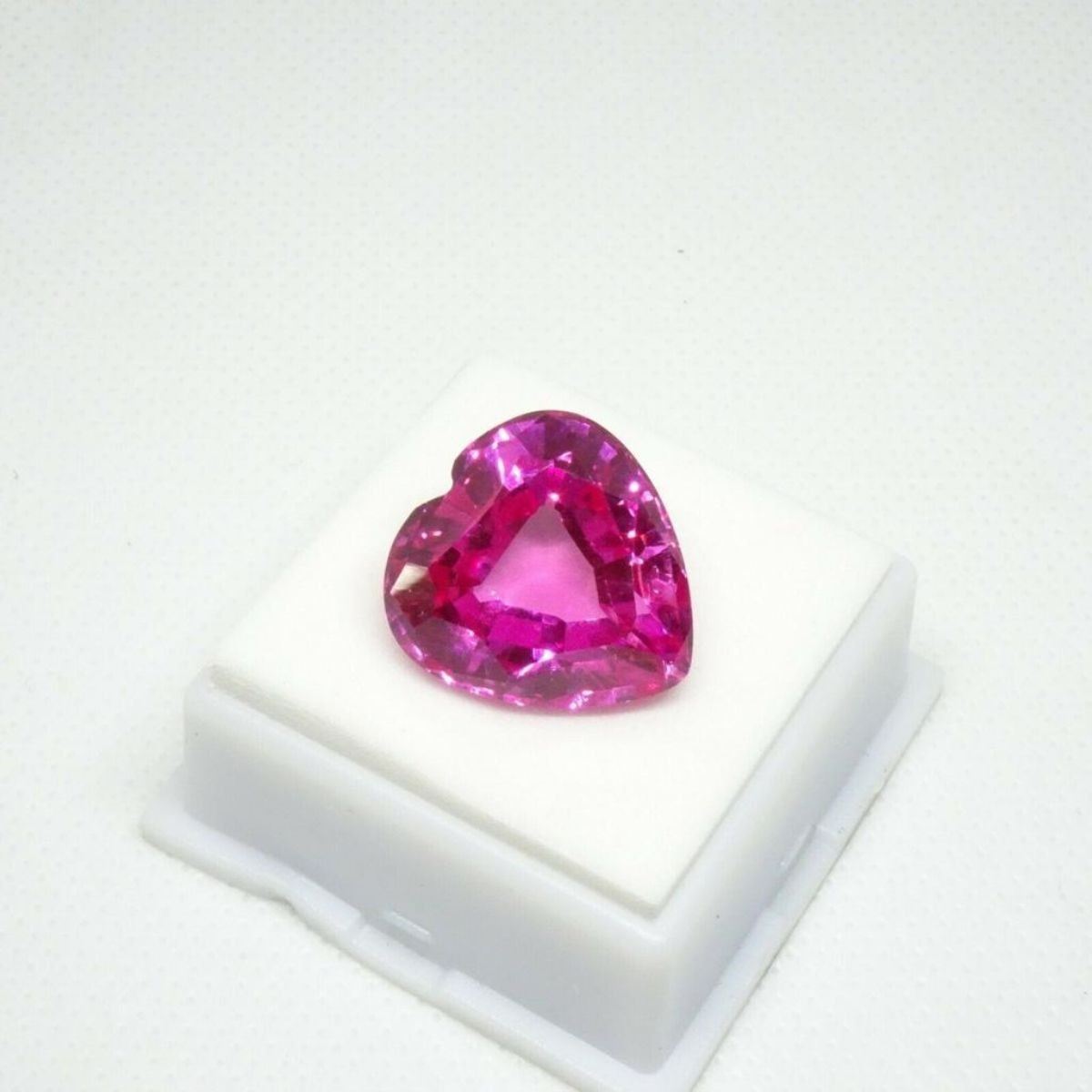 Large size ( 30.2ct. ) heart-shaped, faceted Raspberry Pink Topaz gemstone, ready to be mounted as a pendant or enhancer. Translucent, enhanced gemstone. 18 X 17.8 X 12 mm.  - 10719-060718-EB-18657