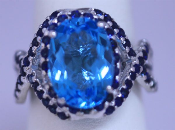 30.35 CTW BLUE TOPAZ AND SAPPHIRE RING .925 STERLING SI **|**|** 30.35 CTW BLUE TOPAZ AND SAPPHIRE RING .925 STERLING SILVER ; MSRP: $200