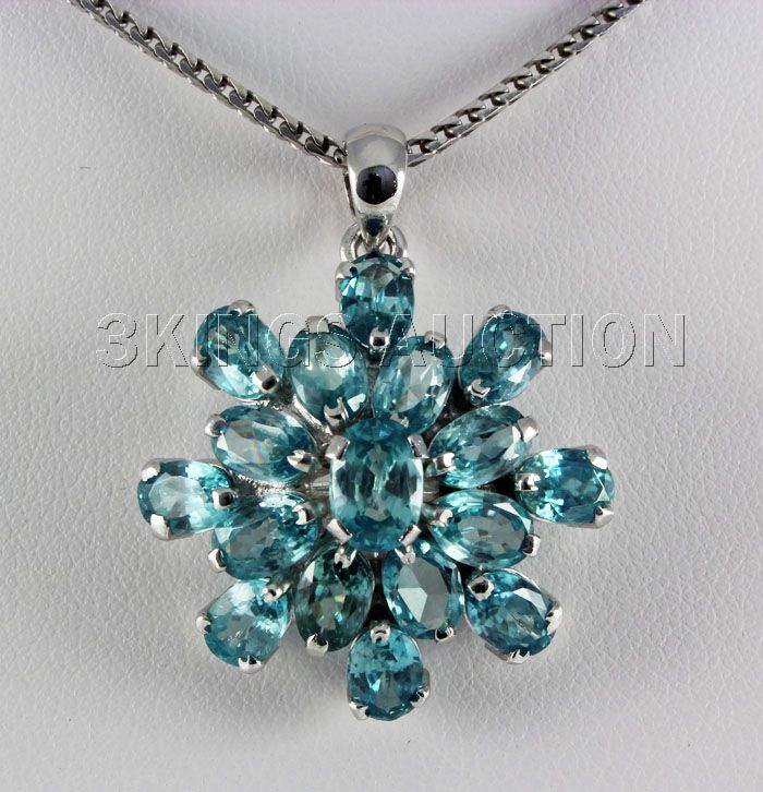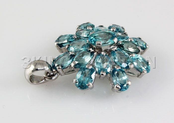 30.35CTW Flower Blue Zircon Cluster Silver Pendant **|**|** Beautiful Sky Blue Zircon Gemstone in Flower Design Silver Pendant; Size: small 6x4mm*center 7x5mm; ctw: 13.45; stone count: 17; gram weight: 3.38 ; MSRP: $1300