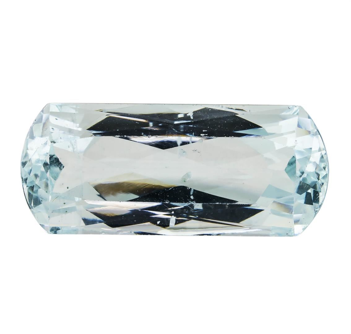 One natural rectangle cushion cut aquamarine with an exact weight of 30.40ct., clarity is slightly included, slightly grayish greenish blue. Gemological Appraisals Services estimates the retail value at $9120 GAS Appraised.