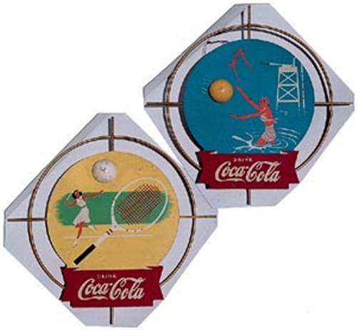 Each measures 16"x16" with a dimensional wooden ball attached. Both pieces have light-med soiling a few paint chips and nicks, minor marks and light wear otherwise. Cond. 7.0-7.5.