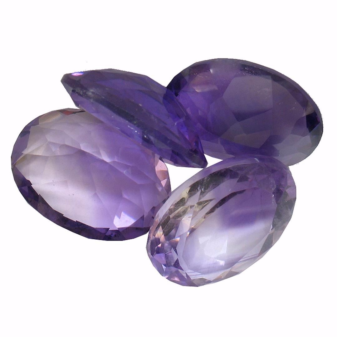 Four oval mixed cut natural amethysts exact total weight 30.41ct., clarity is slightly included, type II, medium dark, very slightly grayish, purple color, (GIA P 6/3), cut is good. Westfield Appraised at $1,055.00.