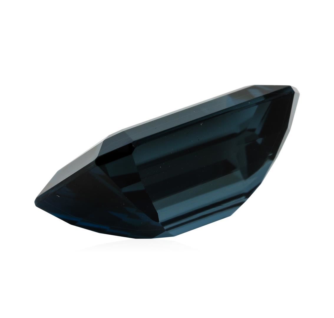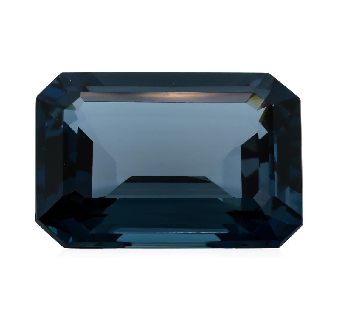 One natural emerald cut london blue topaz with an exact weight of 30.45ct., clarity is eye clean, greenish blue, medium dark. Gemological Appraisals Services estimates the retail value at $609 GAS Appraised.