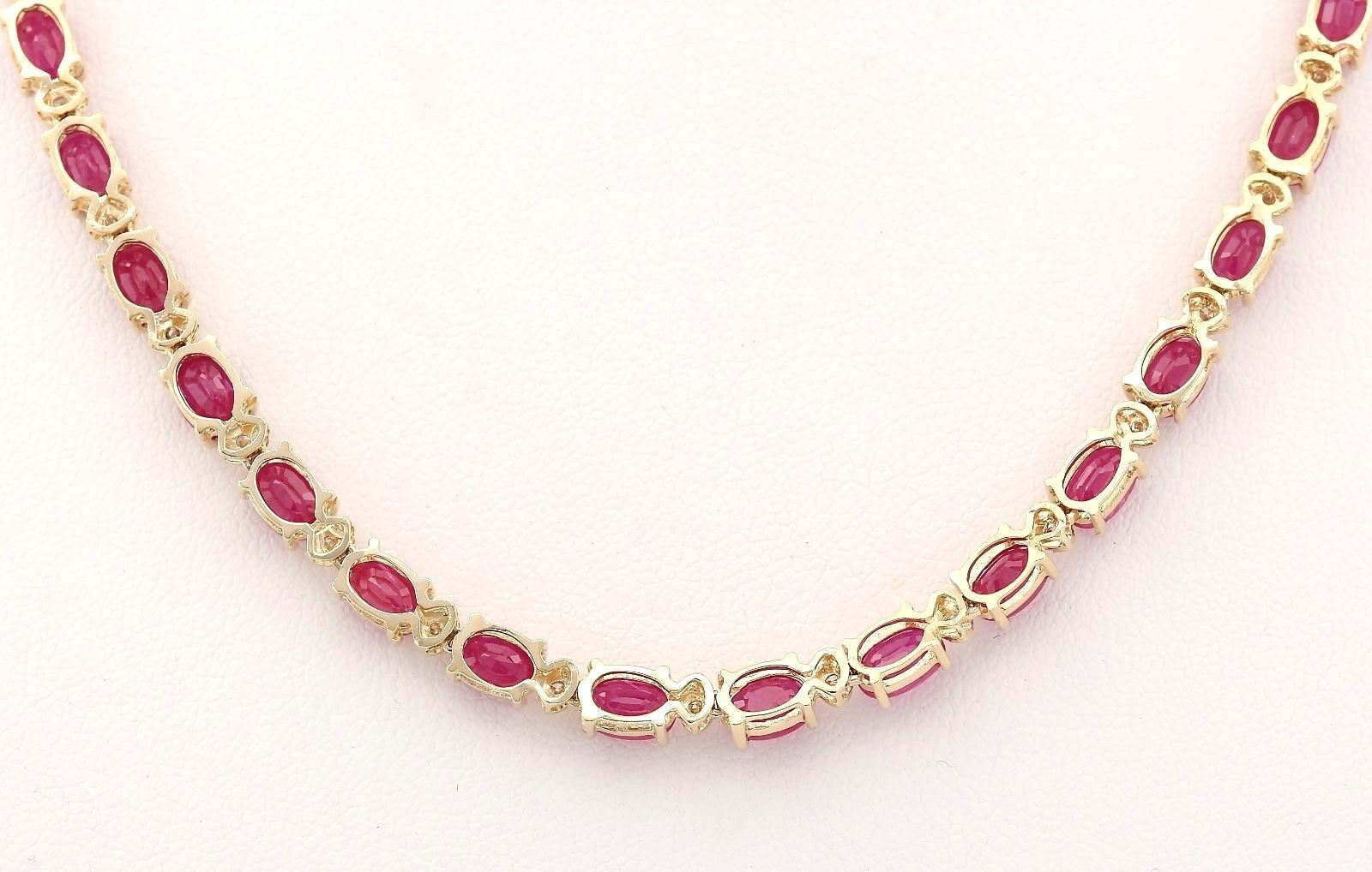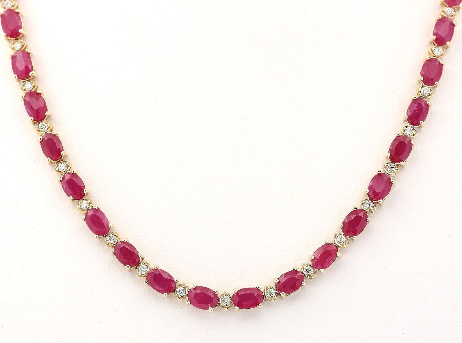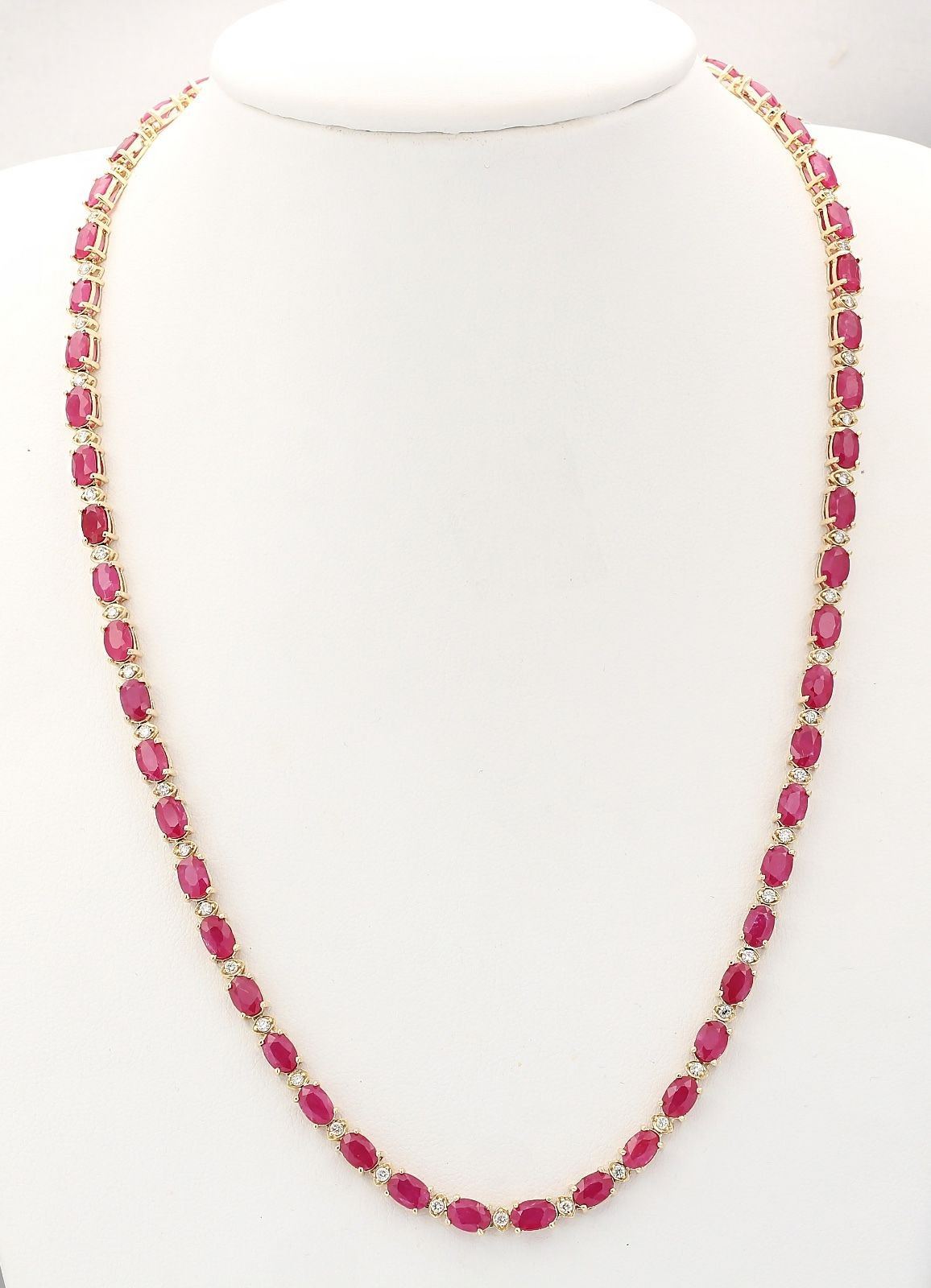 30.65 CTW Natural African Ruby And Diamond Necklace In 14k Yellow Gold
