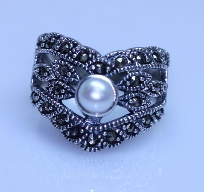 30.75 CTW PEARL ANTIQUE LOOKING JEWELRY .925 STERLING S **|**|** 30.75 CTW PEARL RING ANTIQUE LOOKING JEWELRY .925 STERLING SILVER ; MSRP: $200