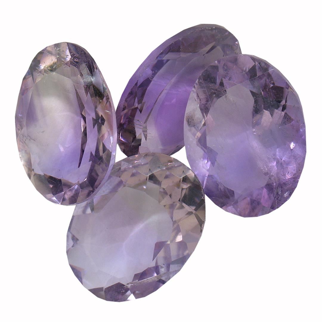 Four oval mixed cut natural amethysts exact total weight 30.78ct., clarity is slightly included, type II, medium dark, very slightly grayish, purple color, (GIA P 6/3), cut is good. Westfield Appraised at $1,065.00.