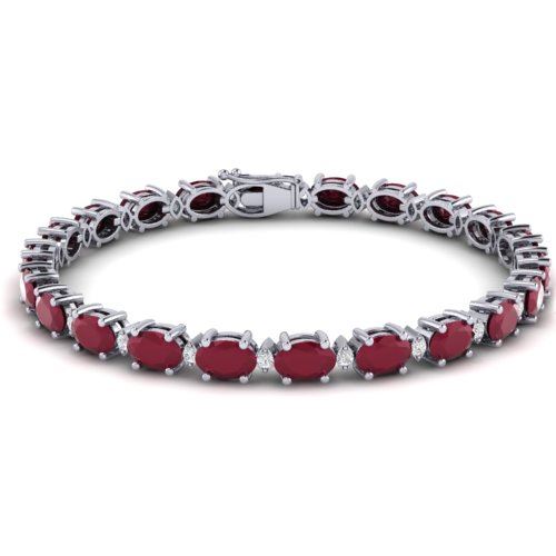 REF-217T5M -29459 ---- 30.8 CTW Ruby & VS/SI Certified Diamond Eternity Bracelet 10K White Gold ---- Luxury Designer Brand Bracelet Appraised at $16,750 Certificate Number US29459 10k White gold, Bracelet Size is 7 Inches, Bracelet measuring approx. 7 mm X 7 inches, weighing in total approx. 13 grams. Made in the USA and is stamped 10k, Main stone 30 carat total weight containing 16 pieces of Mid-Opaque-Deep Red color with AAA quality Oval shape cut Ruby , Stone #2 0.8 carat total weight containing 17 Approx. pieces of H-I color with VS/SI quality Round shape cut Diamond