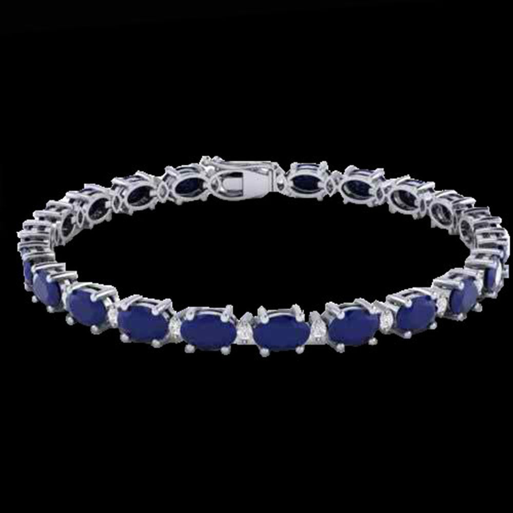 REF-245R5K - SKU: 29461 ---- 30.8 ctw Sapphire & VS/SI Diamond Eternity Bracelet 10k White Gold