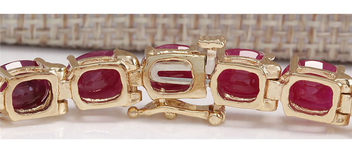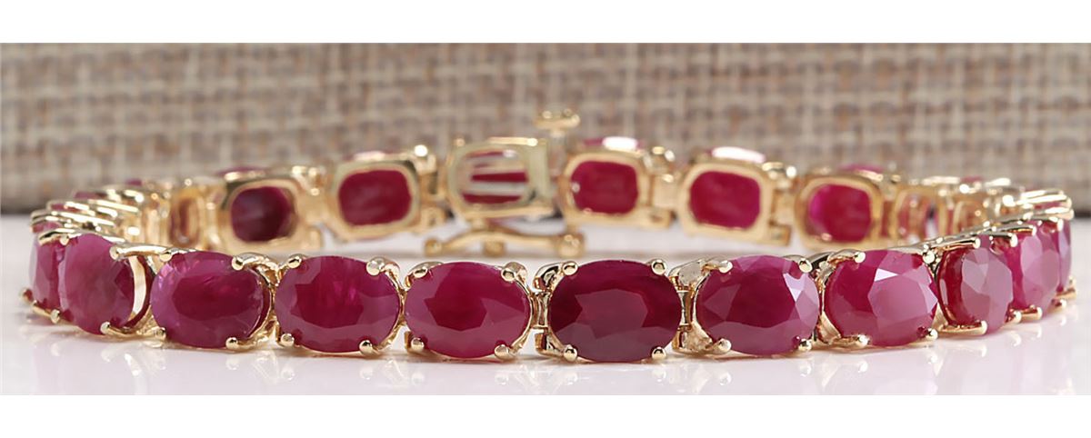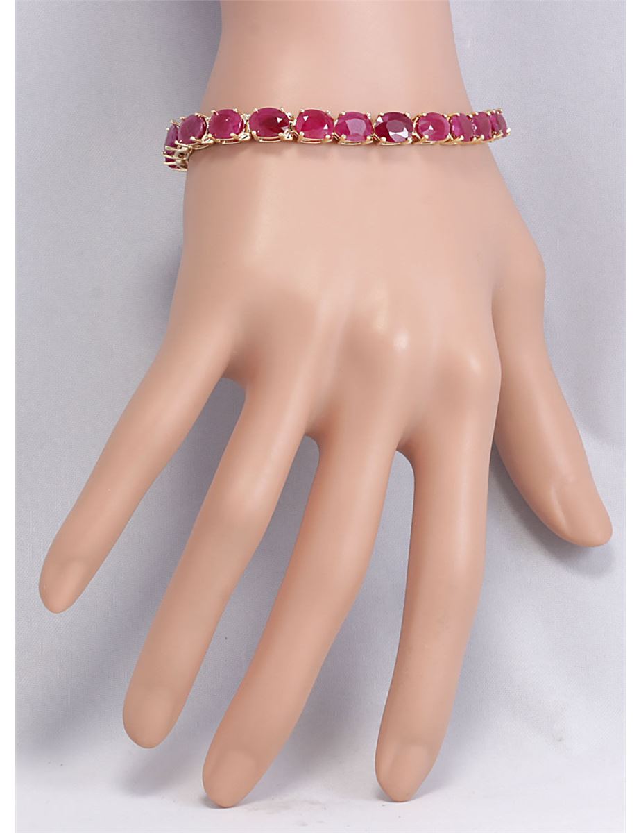 Stamped: 14K Bracelet Width: 6.20mm Bracelet Length: 7.4 Inches Total Bracelet Weight: 14.05 Grams Gemstone Weight: Total natural Ruby weight is 30.89carat. (8x6)AFRICAN HEATED RUBY , NO GLASS OR LED SKU: [703725]