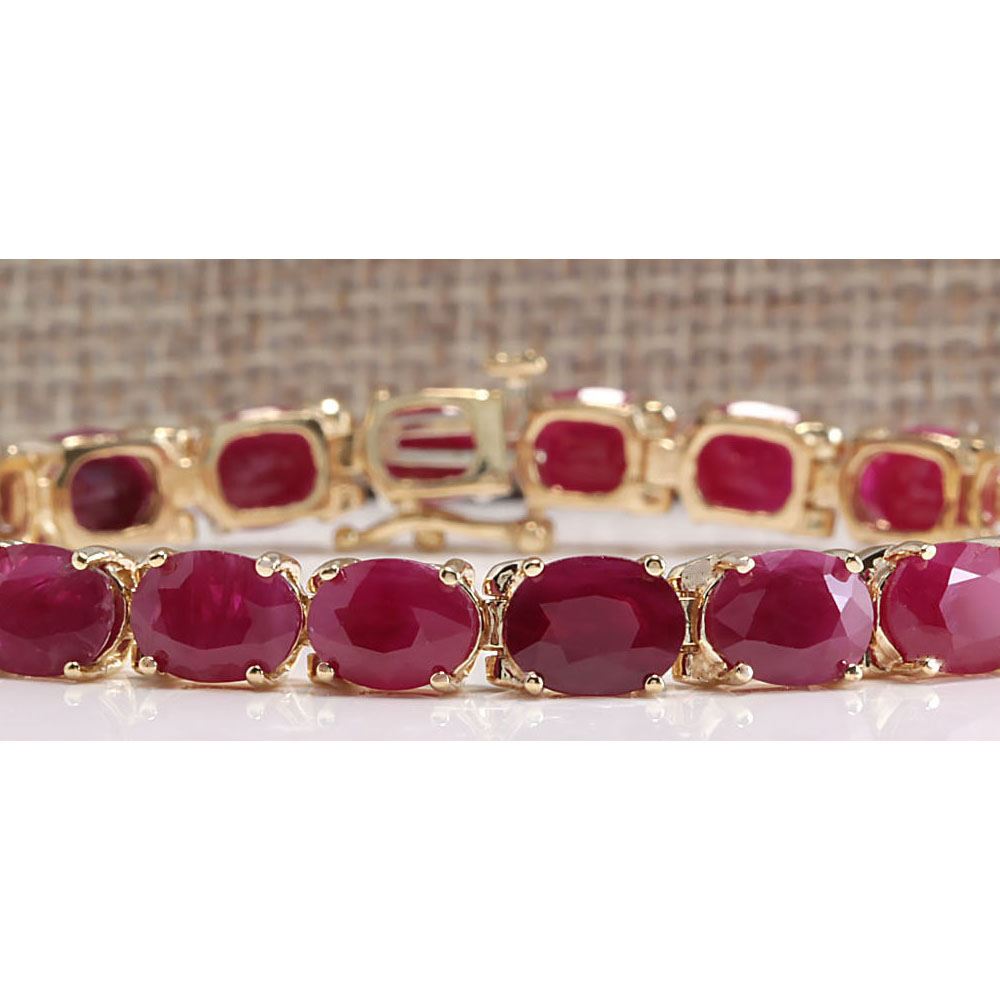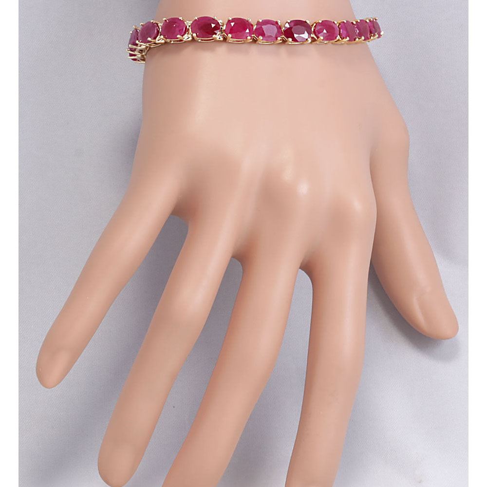 30.89 CTW Natural Red Ruby Bracelet In 18K Yellow Gold