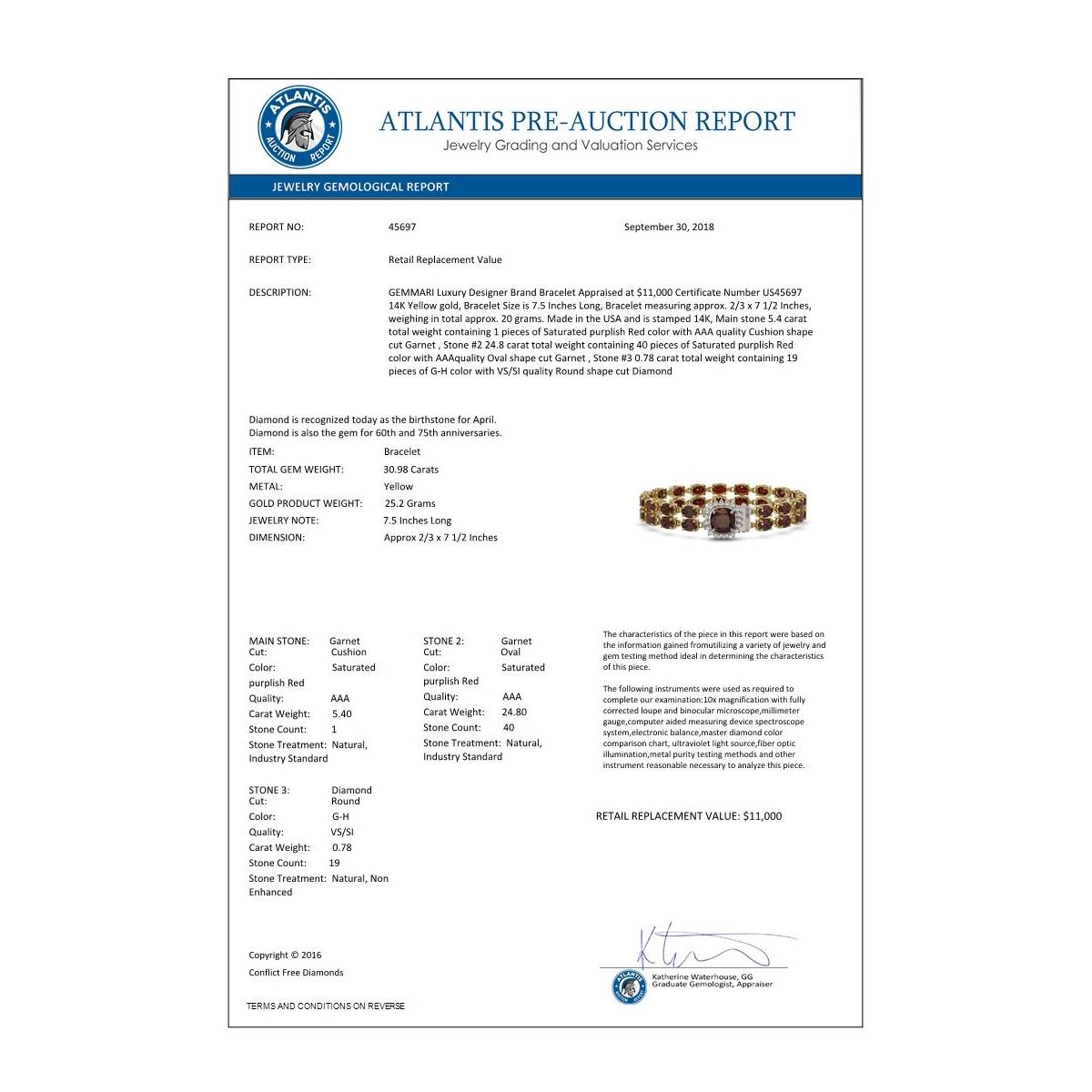 30.98 ctw Garnet & Diamond Bracelet 14K Yellow Gold